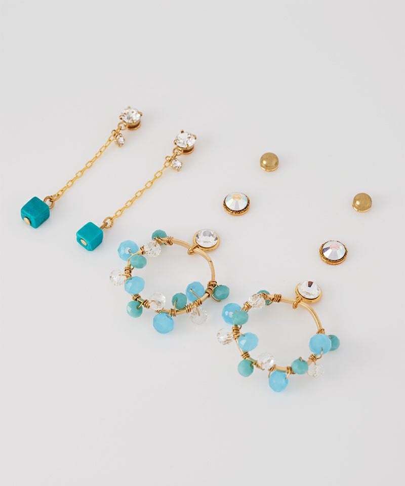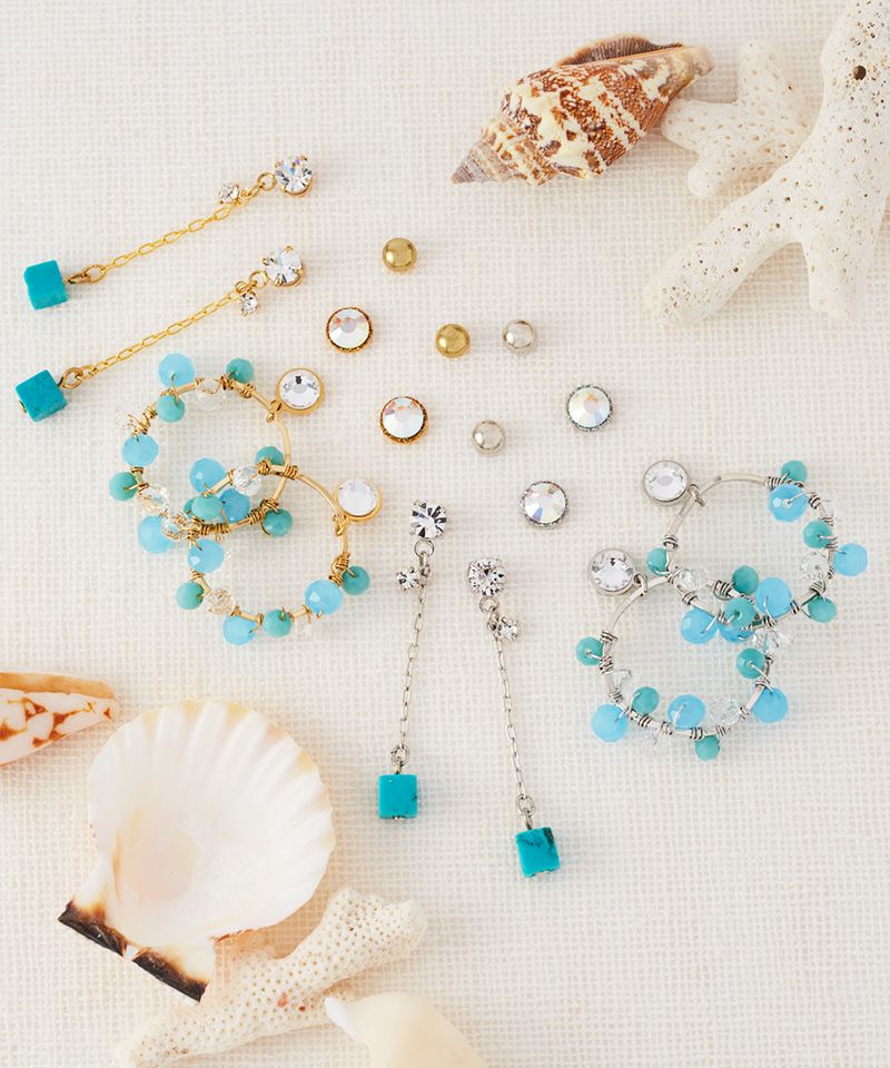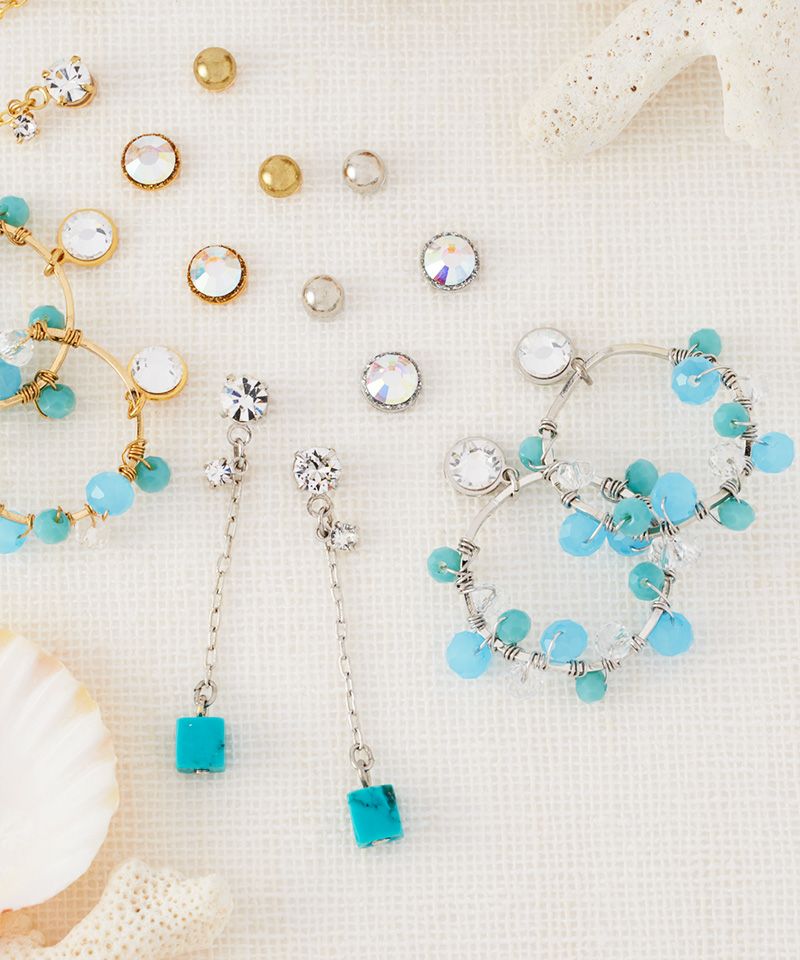 ターコイズピアスを中心に夏にぴったりな異なるデザインを贅沢に詰め込んだセットアイテム。
