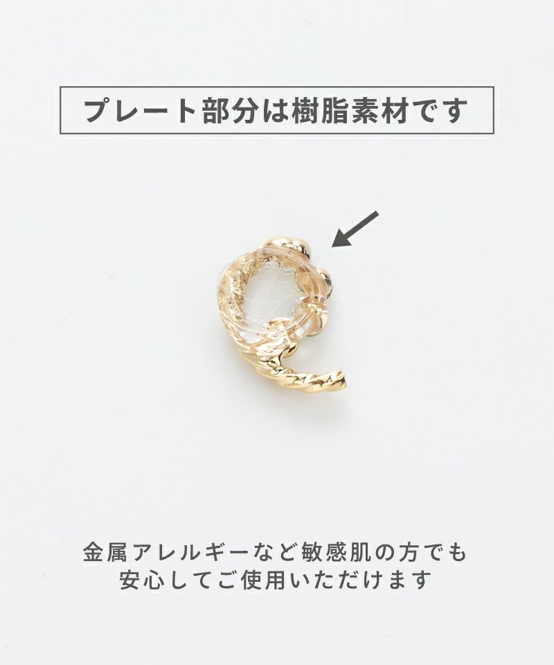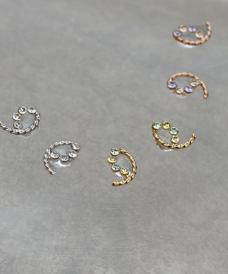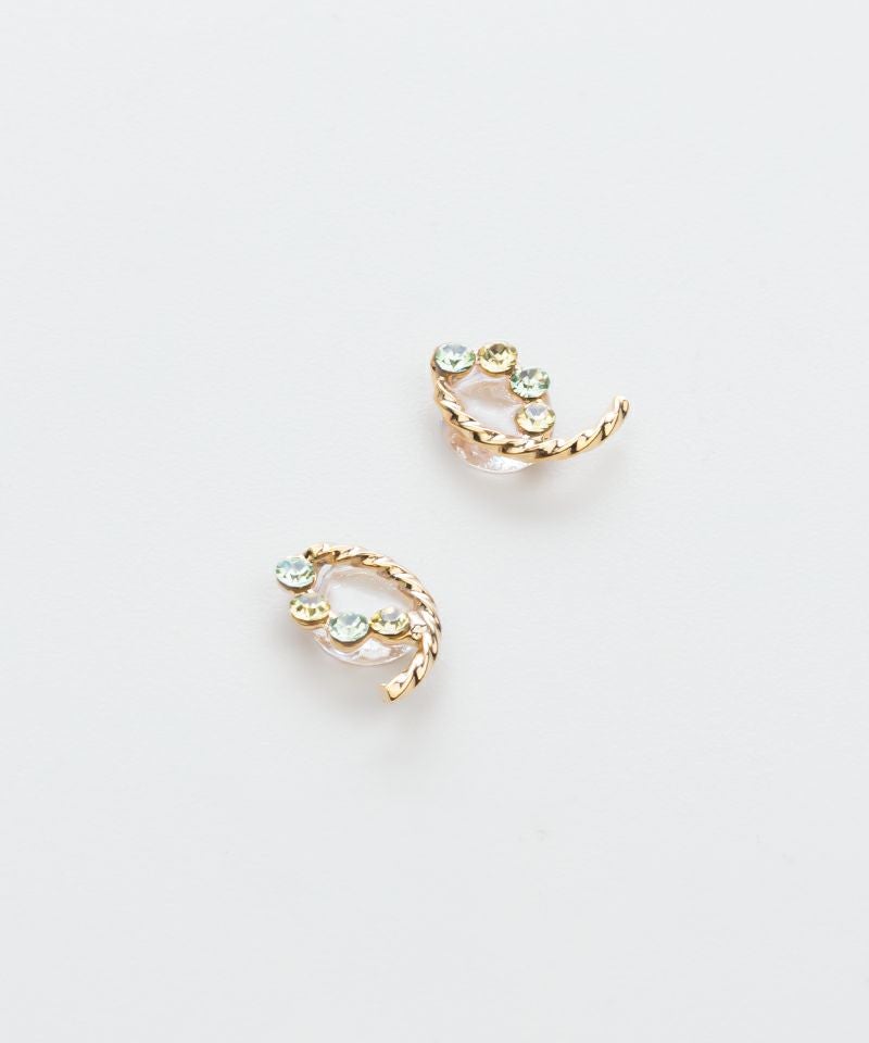 控えめに輝く4つのストーンが、リーフモチーフの縁を彩るデザイン。