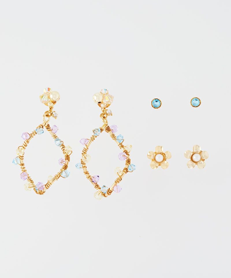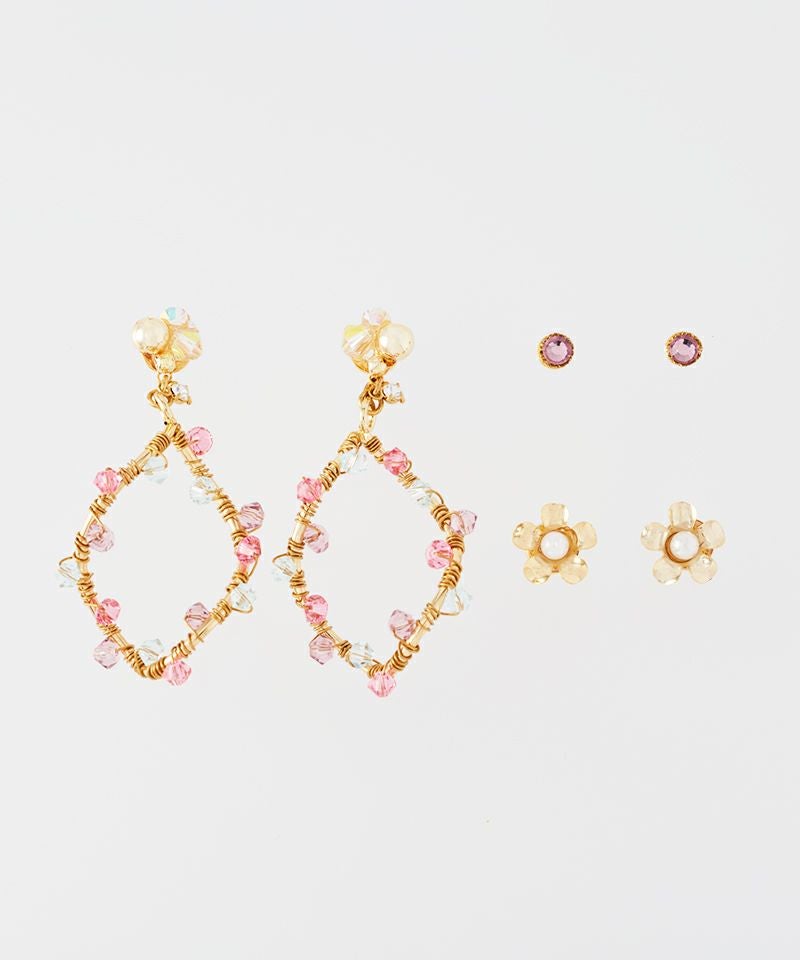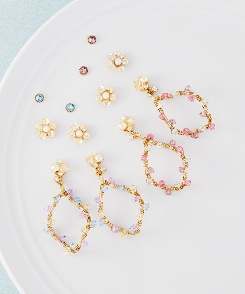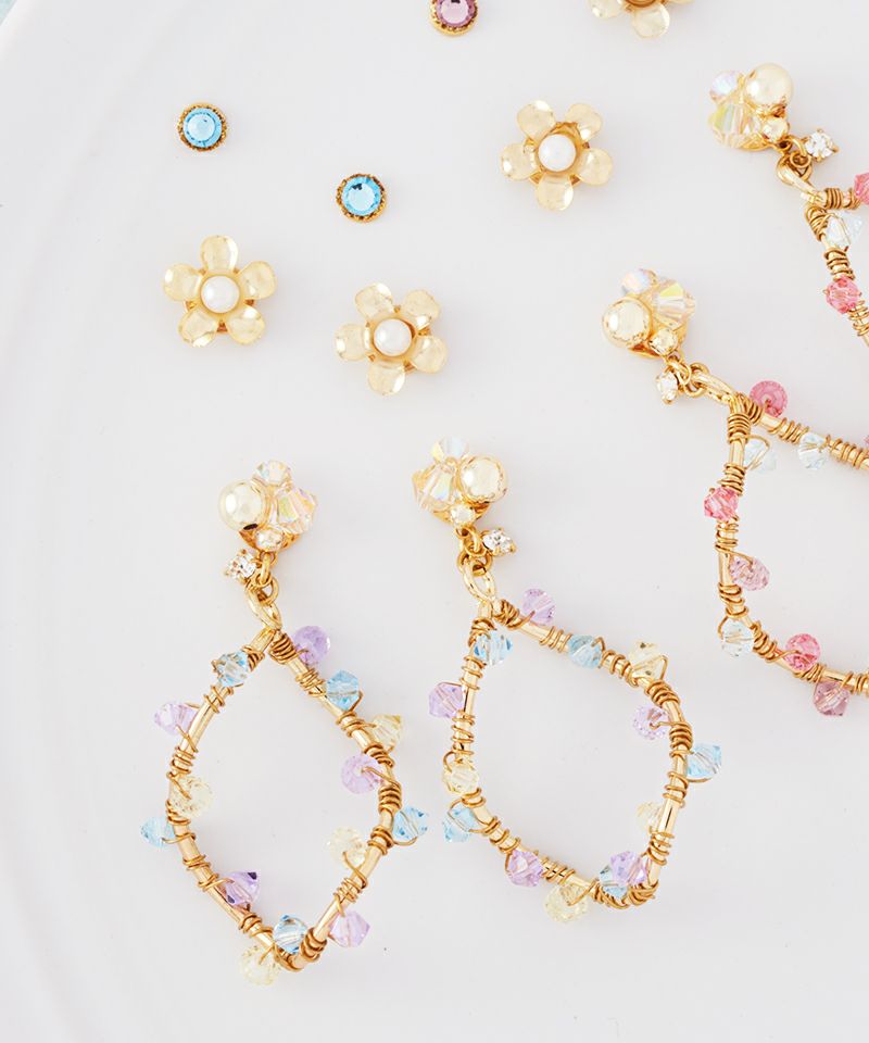 繊細なビーズを巻きつけたフープチャームと、優しく可愛いフラワーモチーフの組み合わせはカジュアルにもフェミニンにもマッチします☆