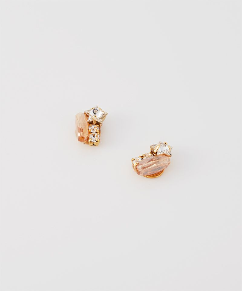 クリスタルガラスが小さくも印象的な光を放ち、耳元に上品で繊細なアクセントを添えます。