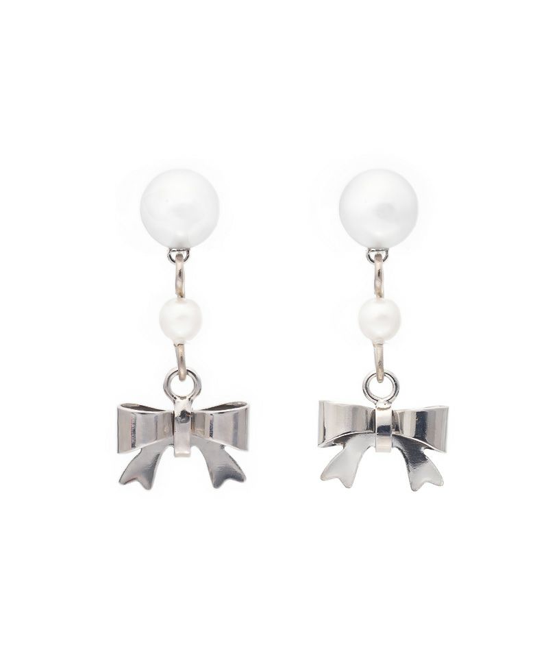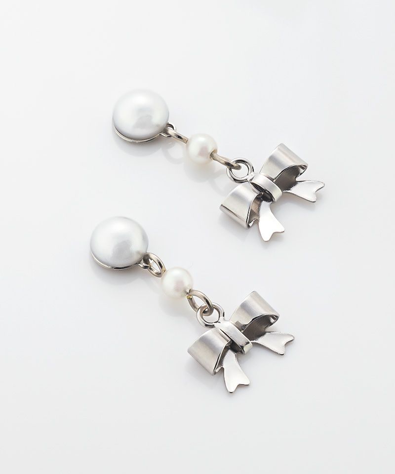 小ぶりのリボンが可愛らしく揺れてとても可愛い パールとゴールドの組み合わせが素敵