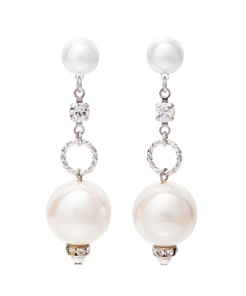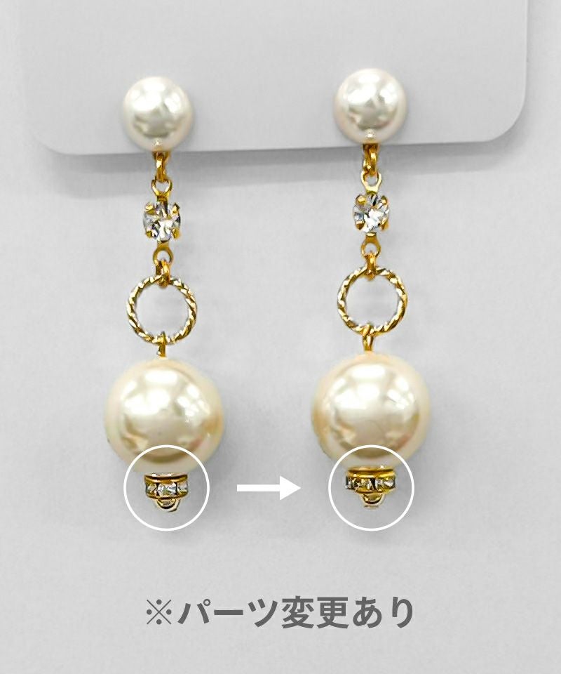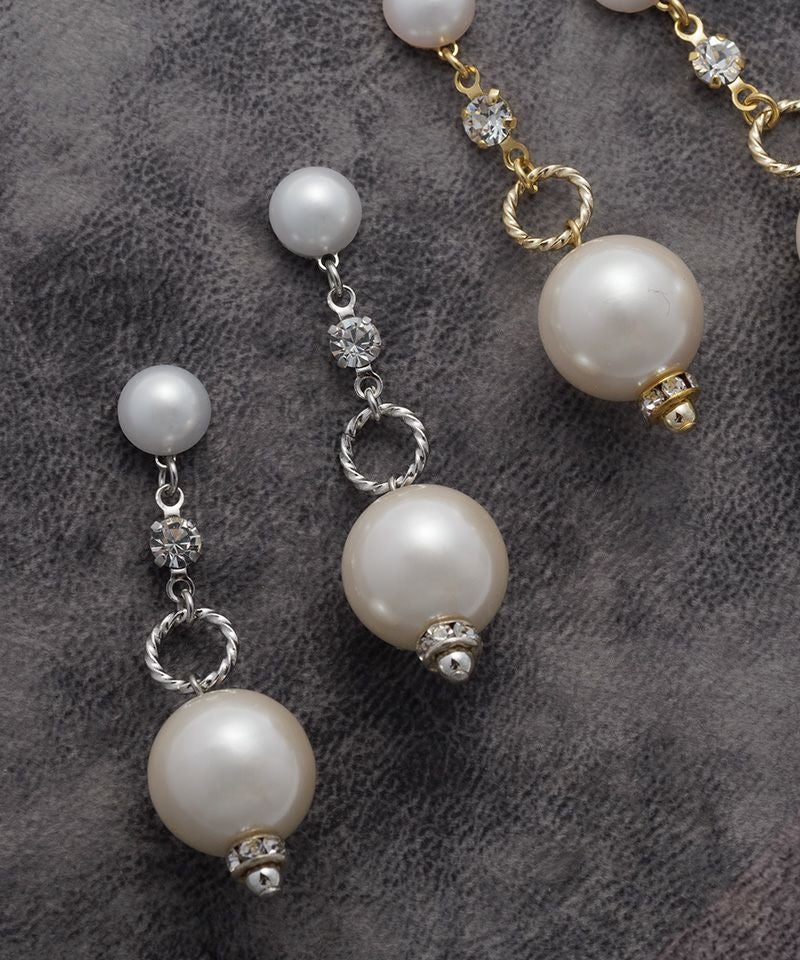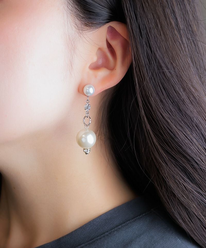 パールプレートの下で大ぶりパールが揺れてとても華やかな印象のアイテムです。