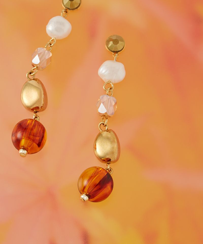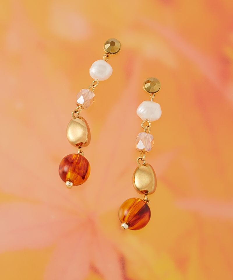 秋の柔らかな光を思わせる、べっ甲カラービーズを使用したアイテム♪