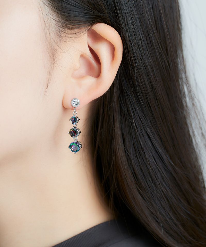 黒のオーロラストーンが連なるミステリアスで大人っぽいデザインのアイテム。