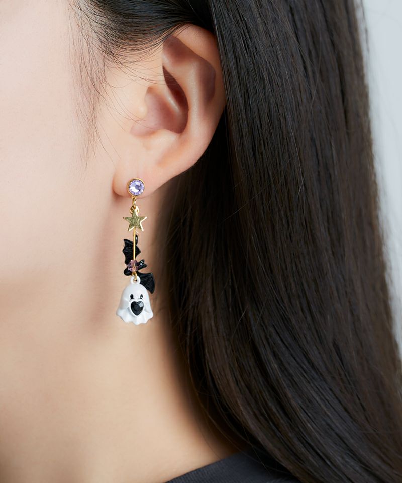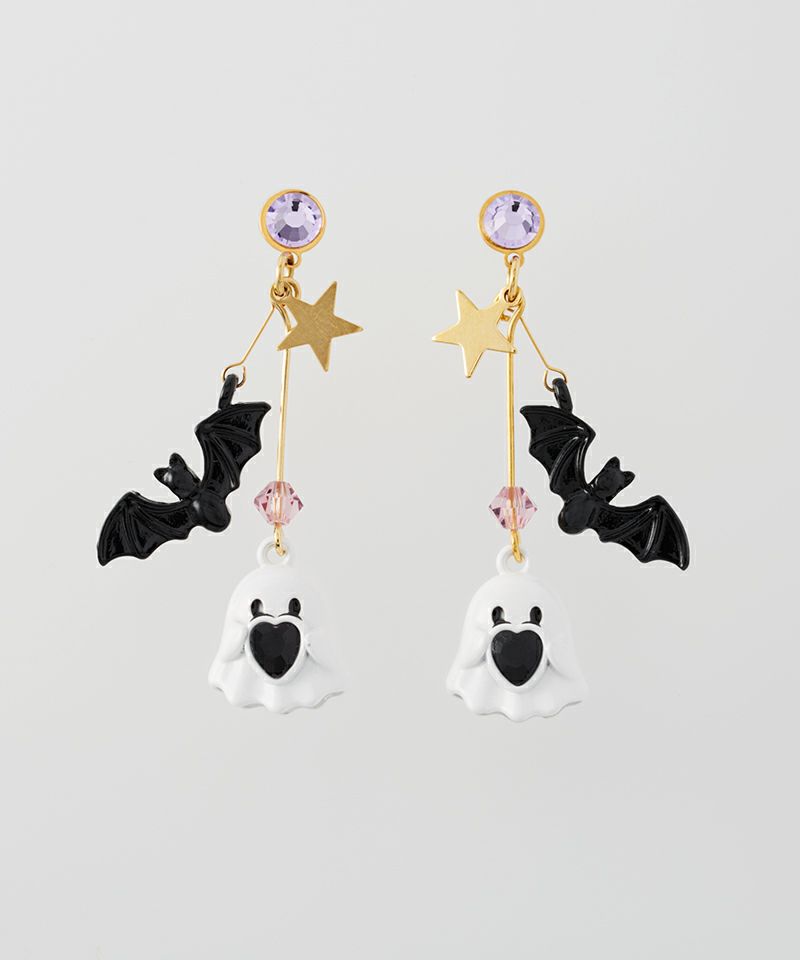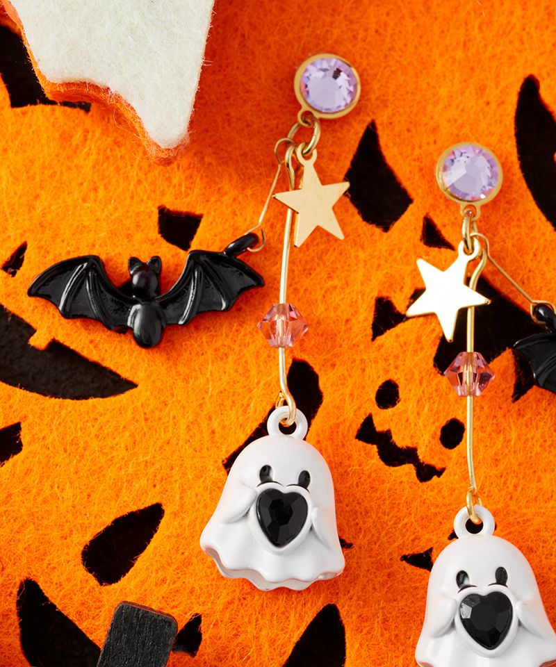 お菓子を狙うオバケと、イタズラ大好きコウモリが耳元で仲良く遊ぶ、ハロウィン感満載のアイテム☆