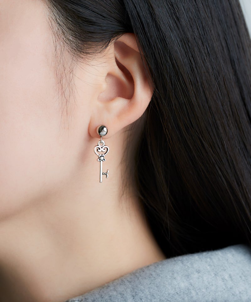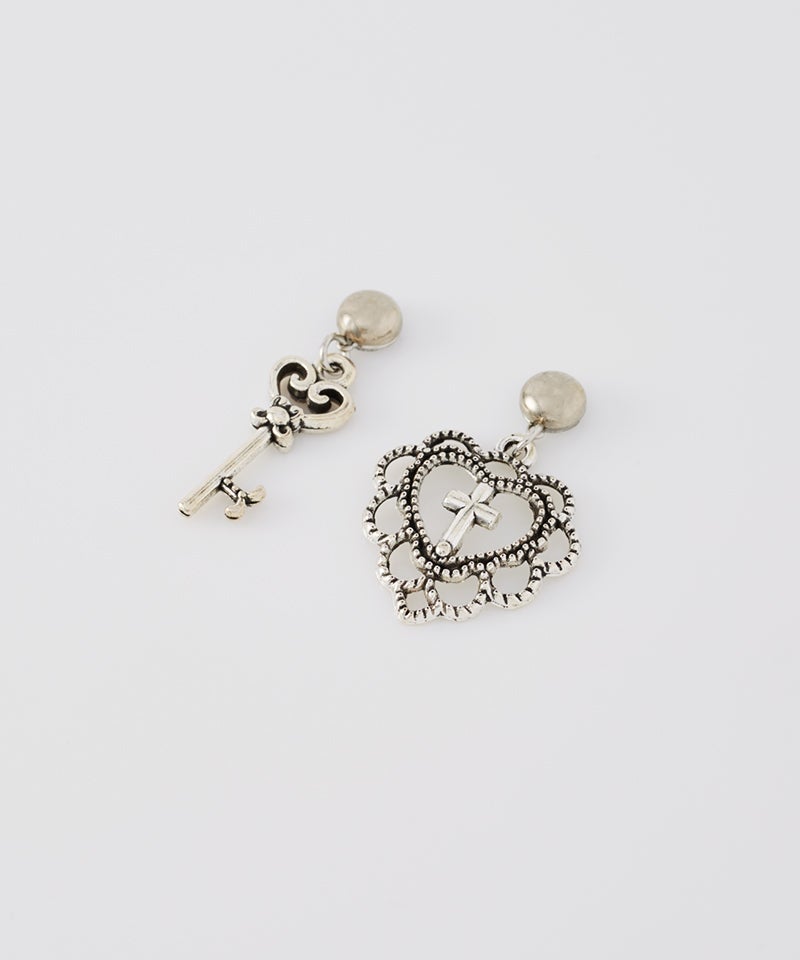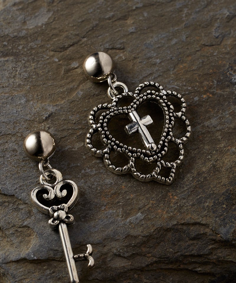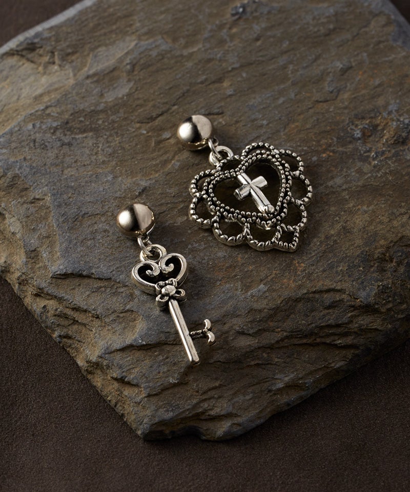 ハートの鍵と鍵穴をモチーフにしたアシメピアス「ロックドハート」