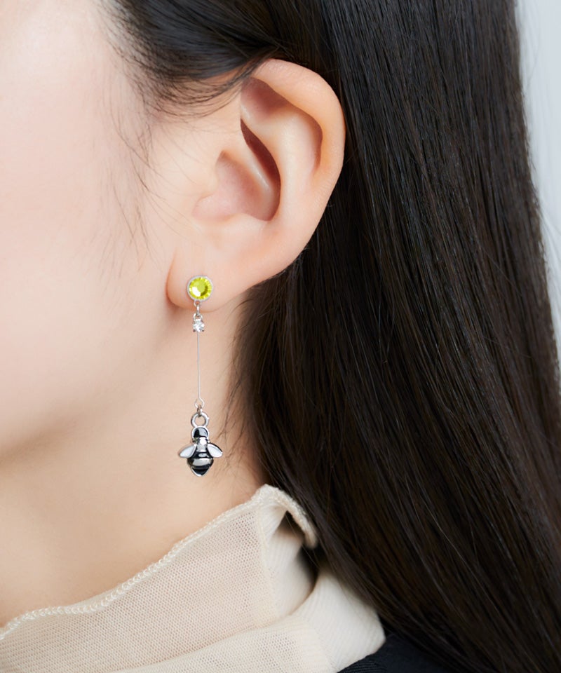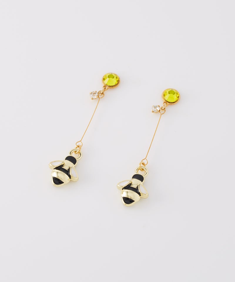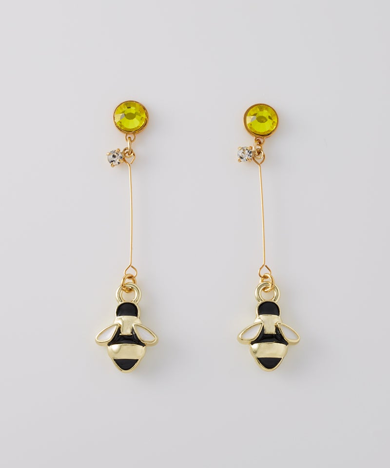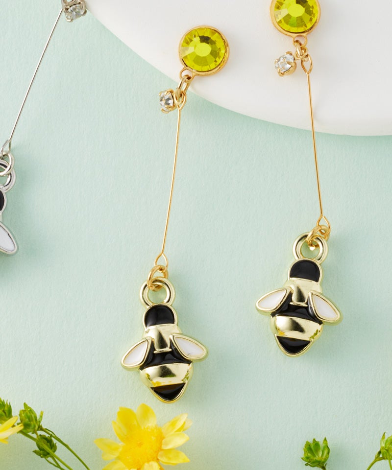 繊細なワイヤーの先で揺れる蜂モチーフは動くたびに光を受けてさりげなくきらめき、顔まわりを明るく華やかな印象に!