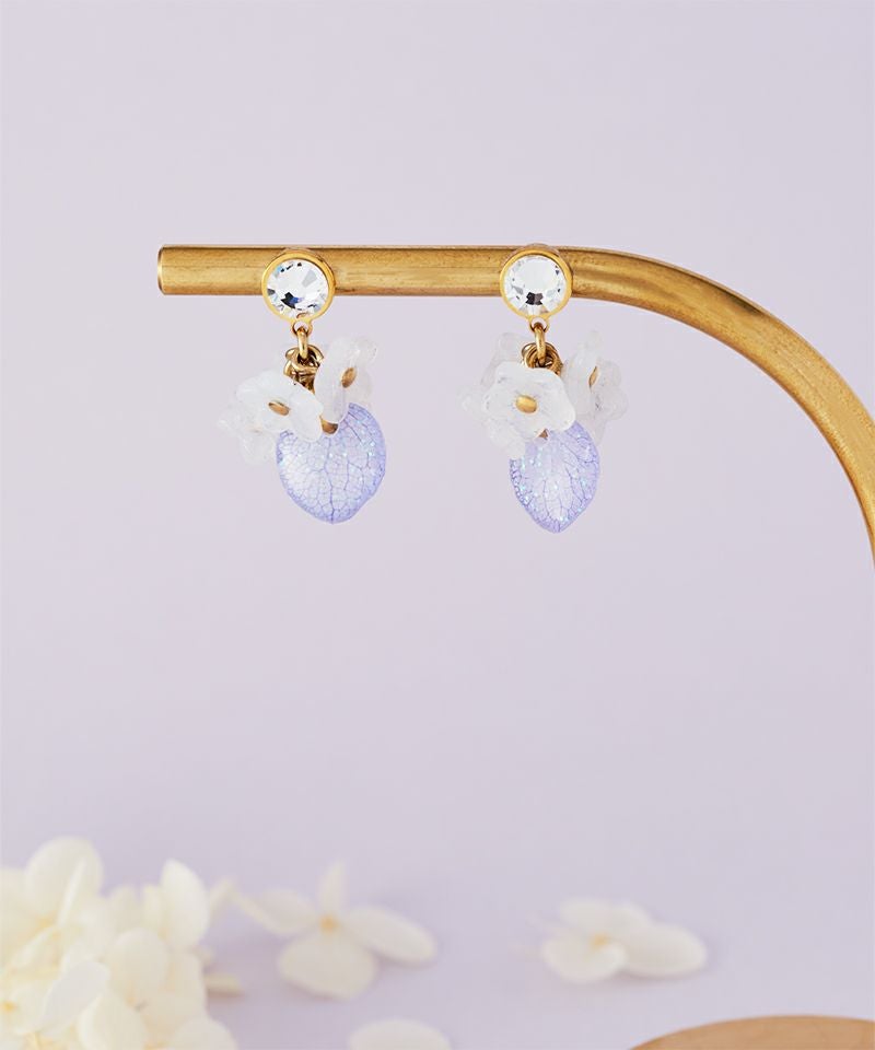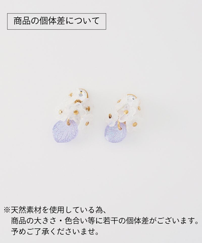 あじさいの花びらをラメレジンでコーティングしているので動くたびにキラキラ光って女性らしさを演出します◎