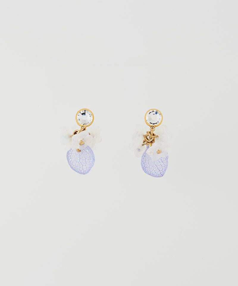 可憐なあじさいの花びらと小さなお花のチェコガラスが雨の中でハーモニーを奏でるような楽しいデザインのアイテム♪