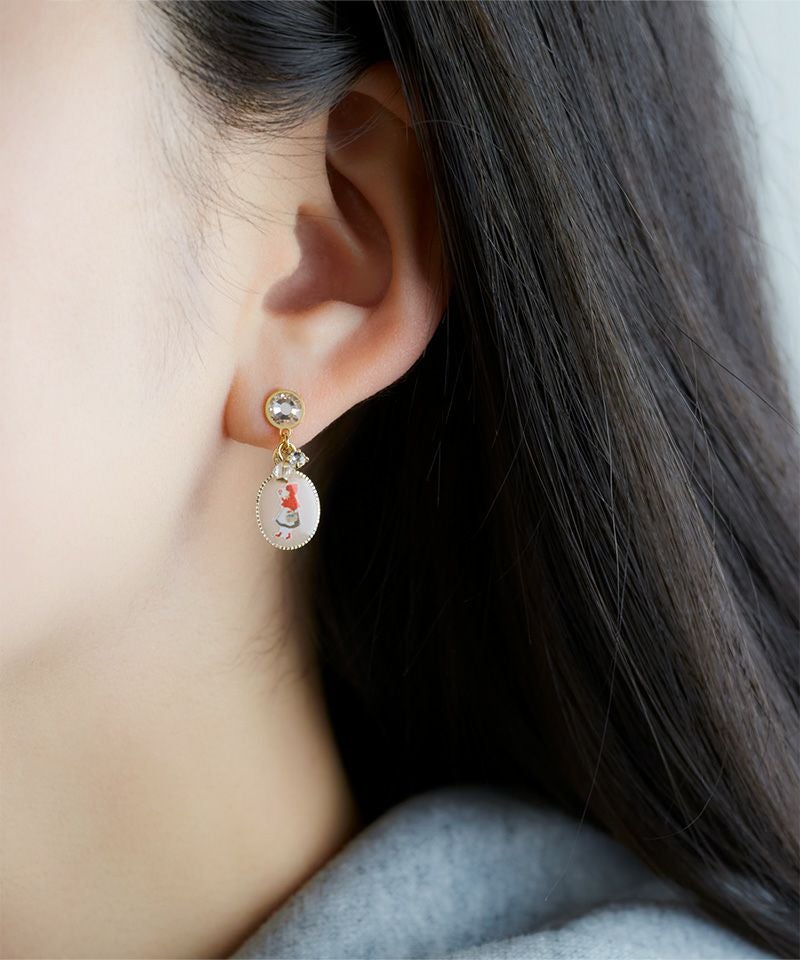 かわいいチャームの中で赤ずきんちゃんが森の中をトコトコ…