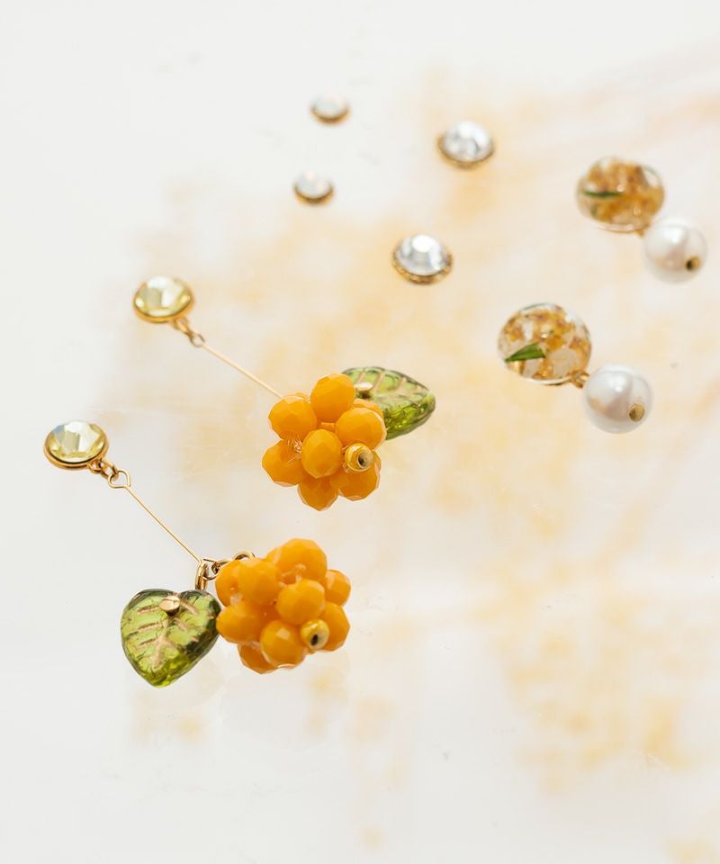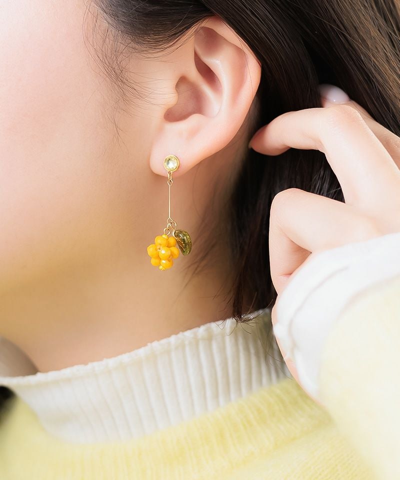 つぶ粒したミモザとリーフパーツがこだわりのデザイン!