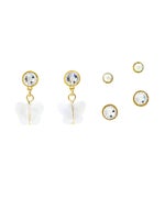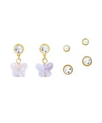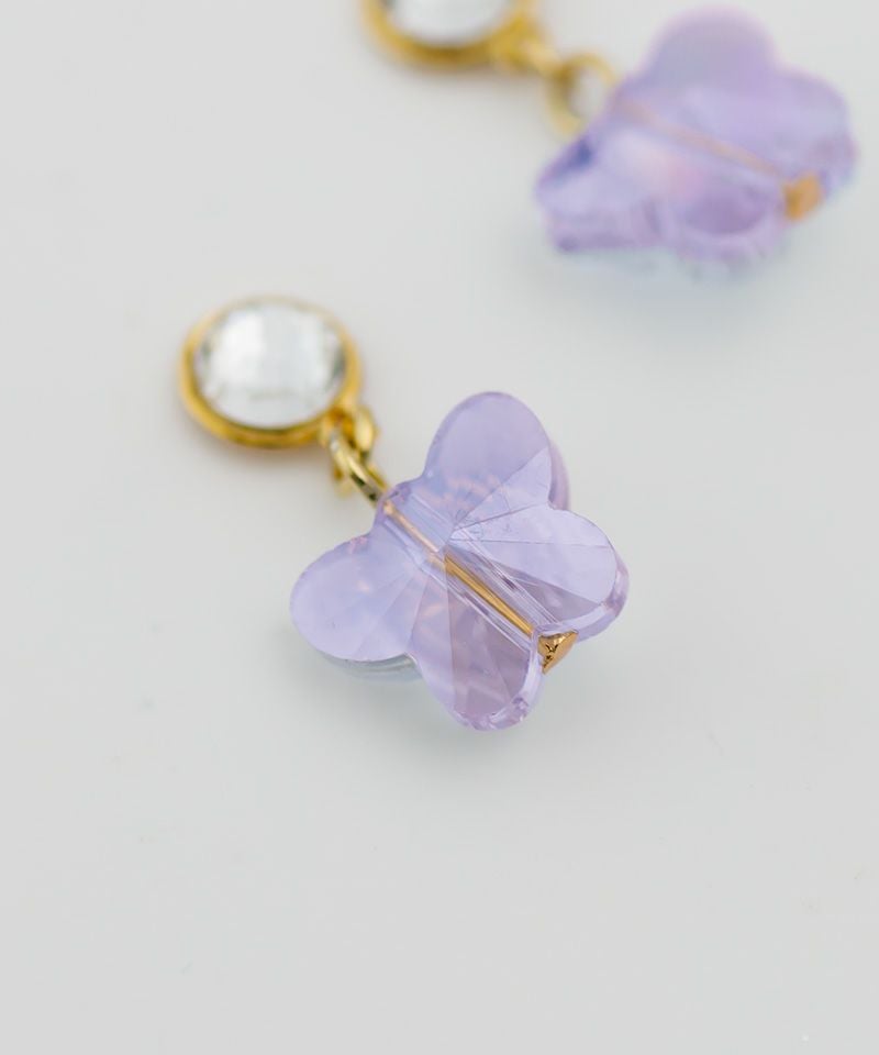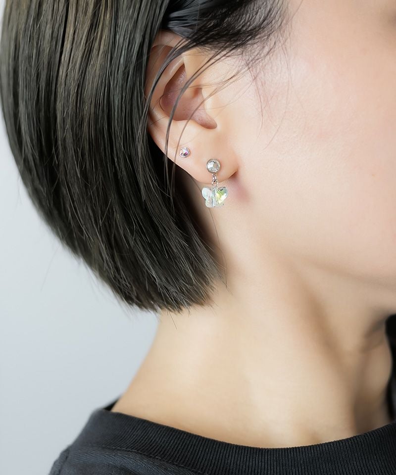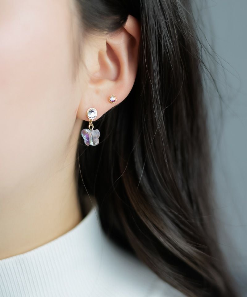 耳元で可愛らしく揺れるバタフライは、光の当たり方によって色味が変化するオーロラカラー。