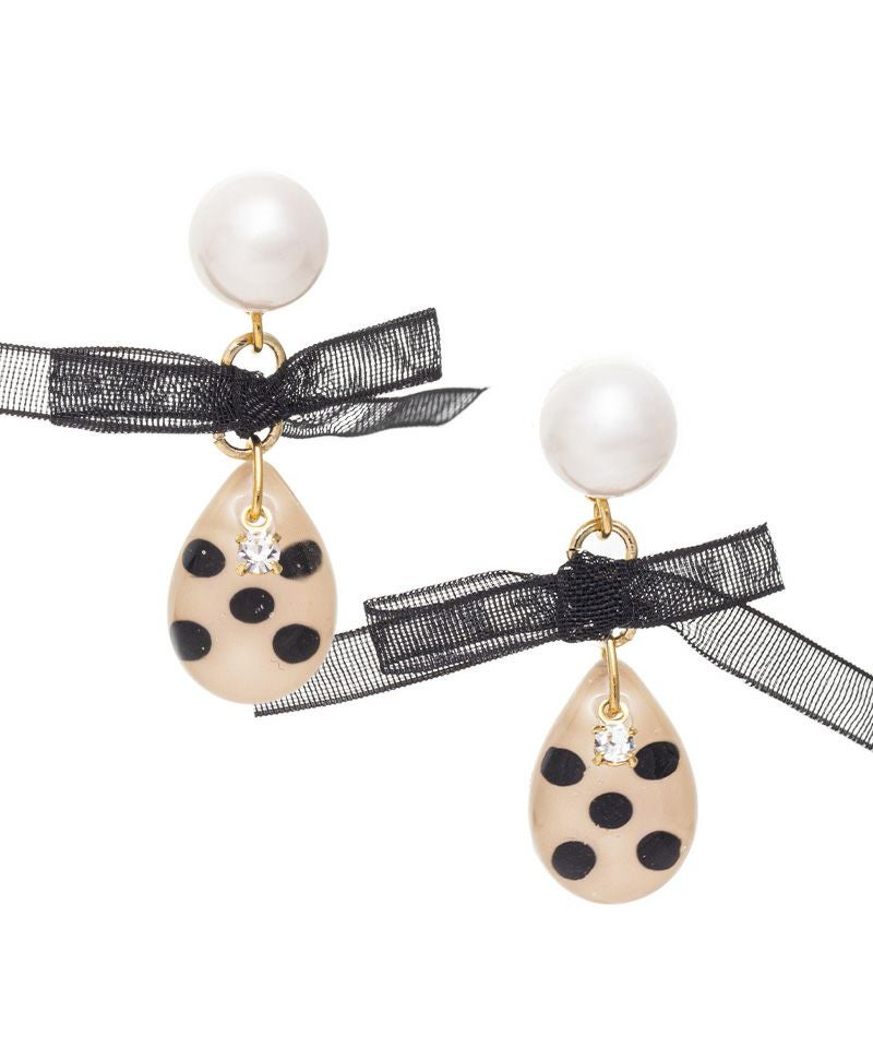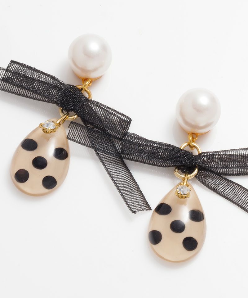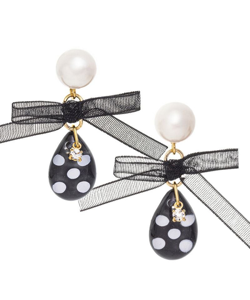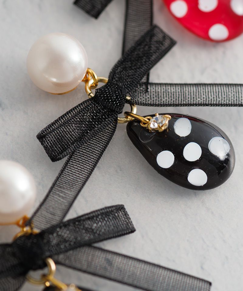 水玉模様のしずく型ストーンとオーガンジーリボンがとても可愛いアイテム☆