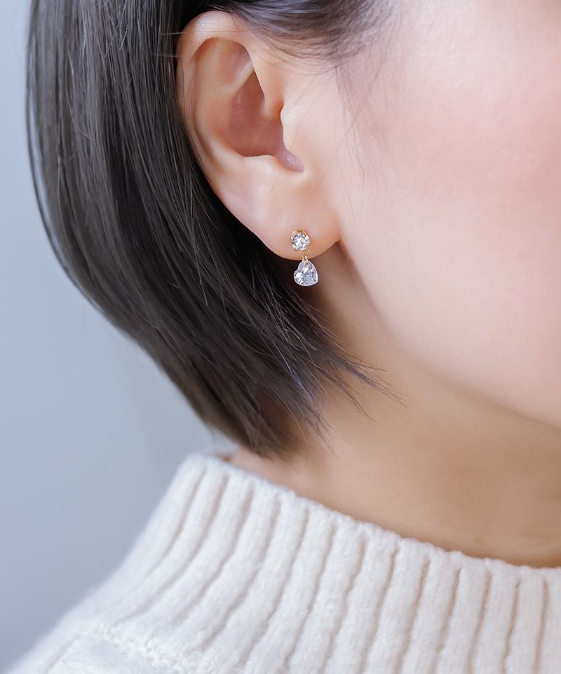 ハートのジルコニアが美しい輝きで耳元を引き立てます!