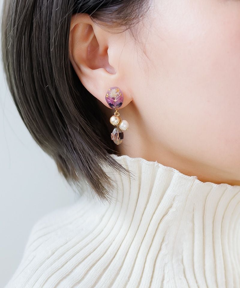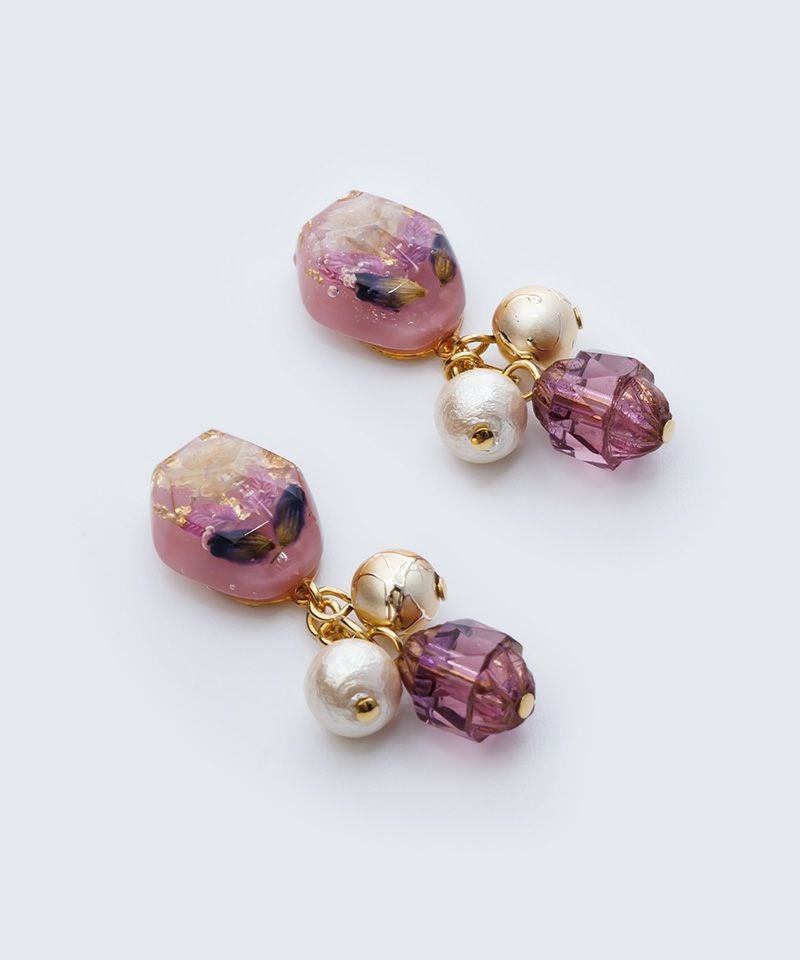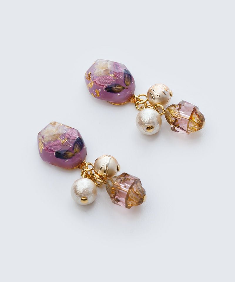 トップのドライフラワーやパールとの組み合わせも女心をくすぐります♪