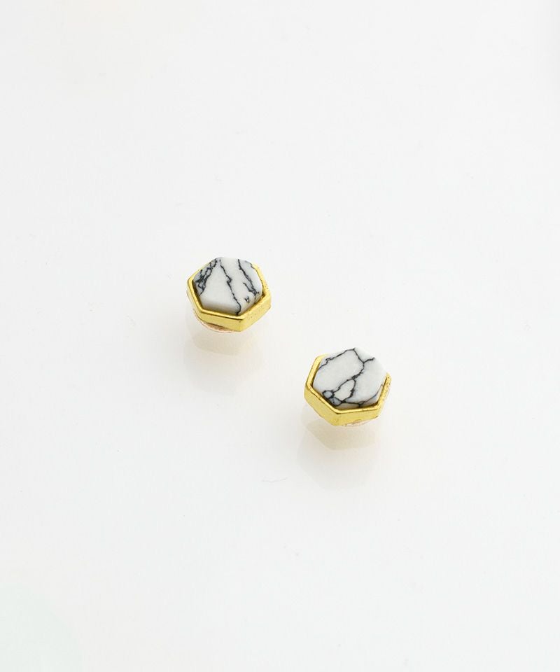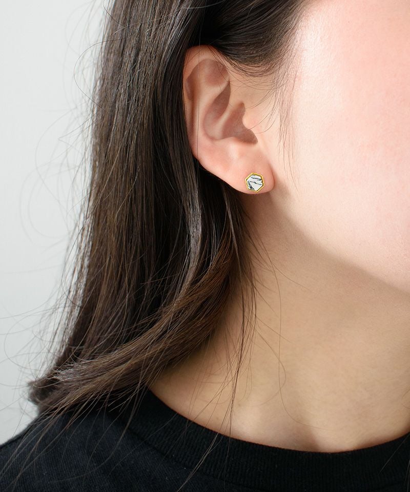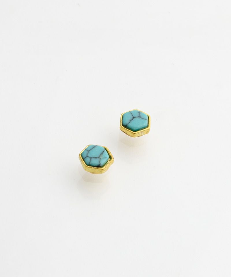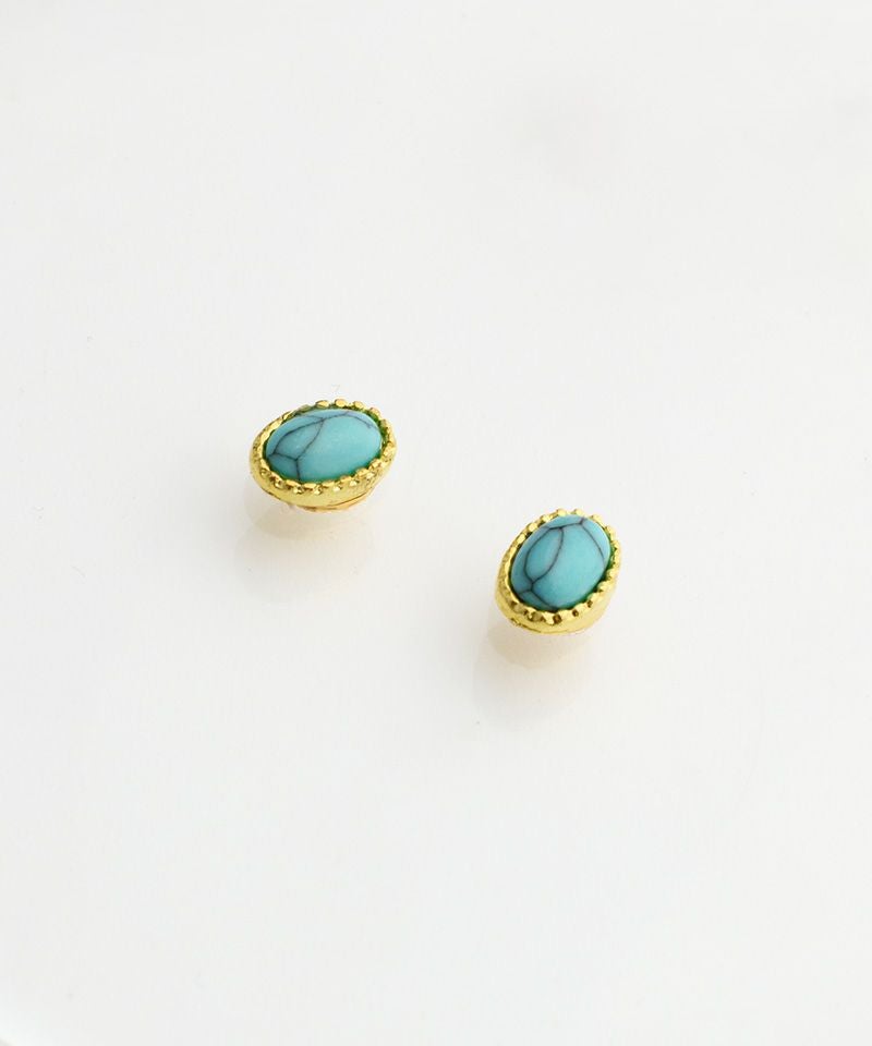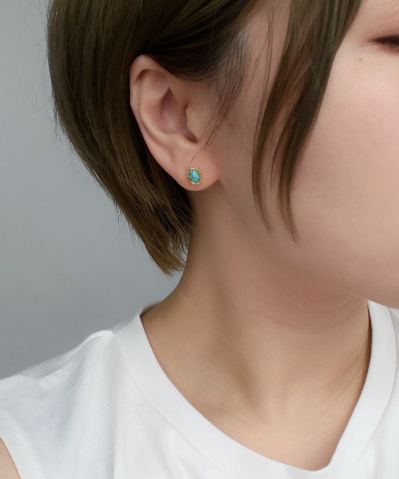 ゴールドフレーム×ターコイズが耳もとを彩り華やかな印象に。