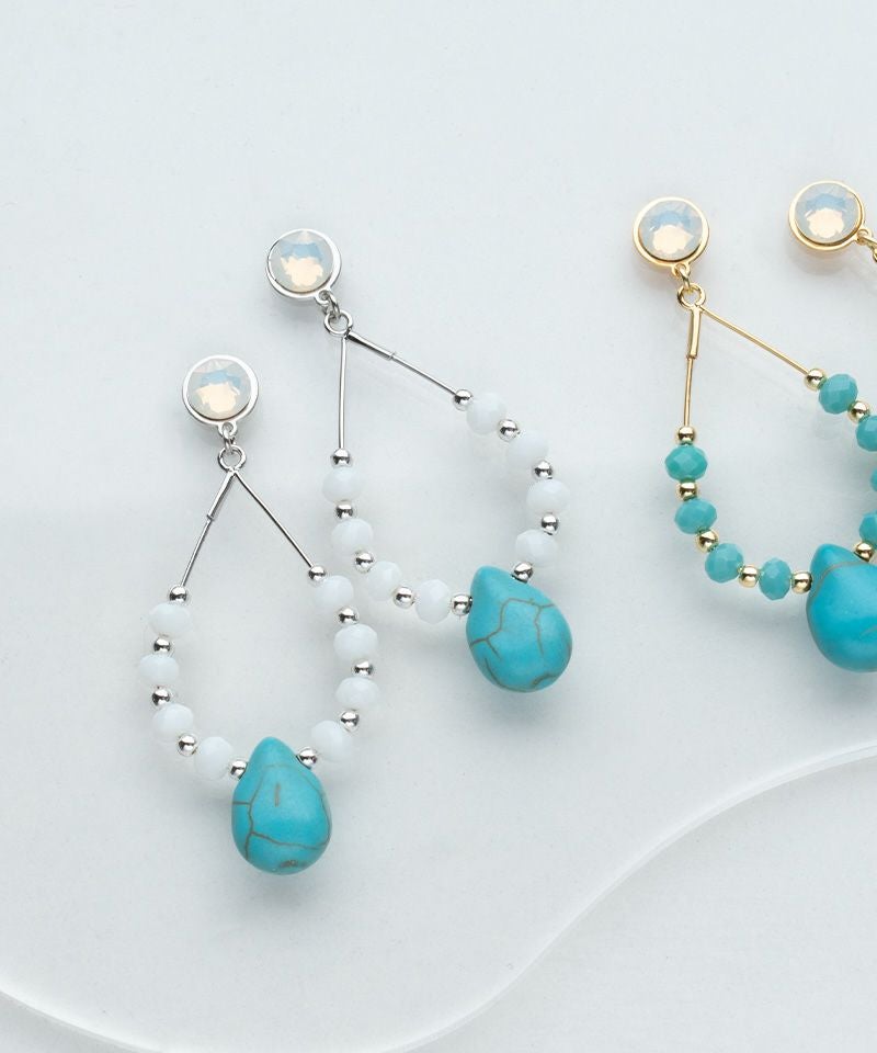 ドロップ型のフープにターコイズがアクセント♪