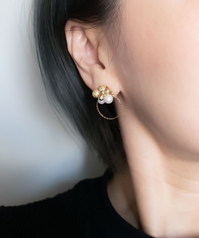 たっぷりのゴールドパーツとパール、フープを絶妙に組み合わせたこだわりのアイテム!