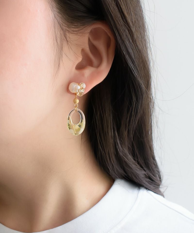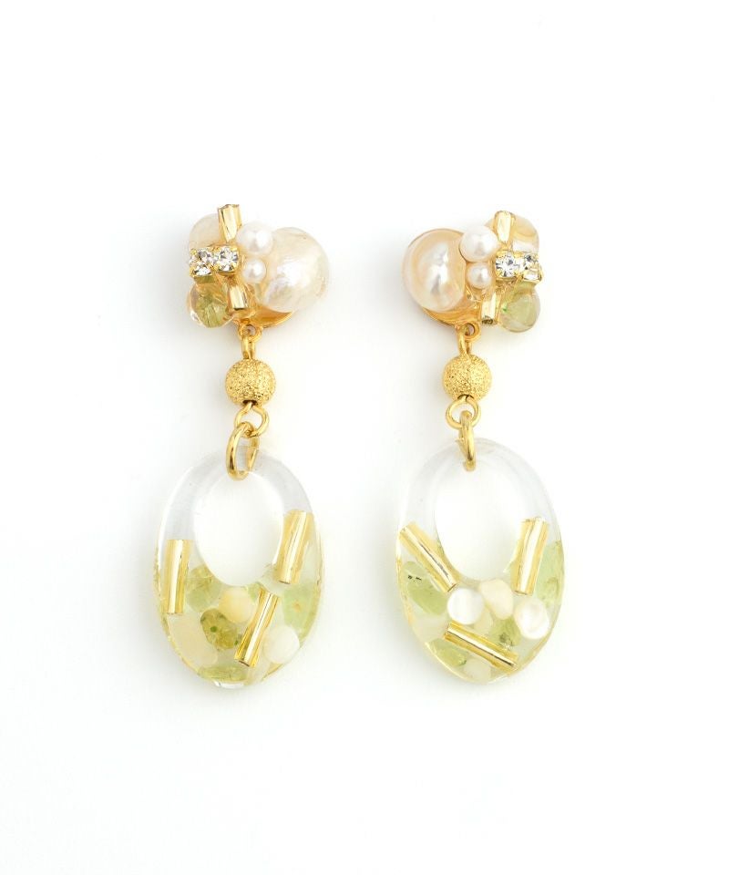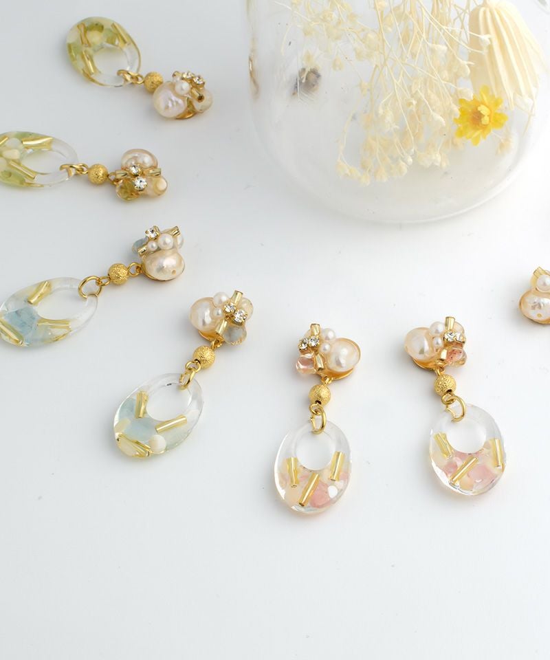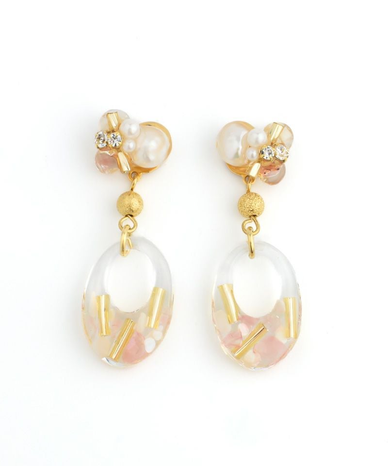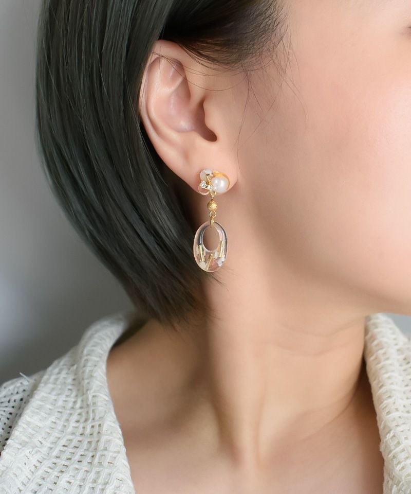 パールビジューとクリアフープが耳元をおしゃれにしてくれます♪
