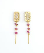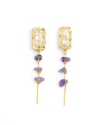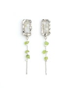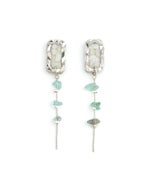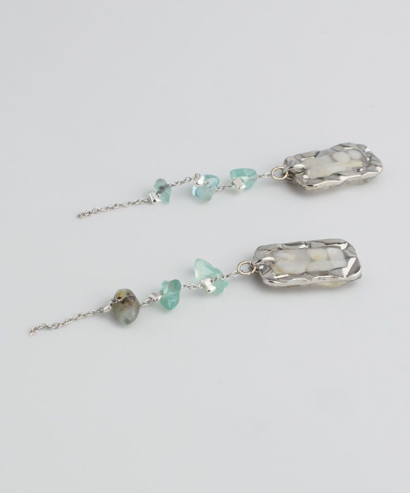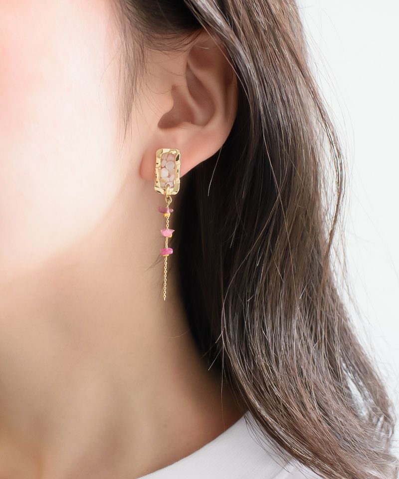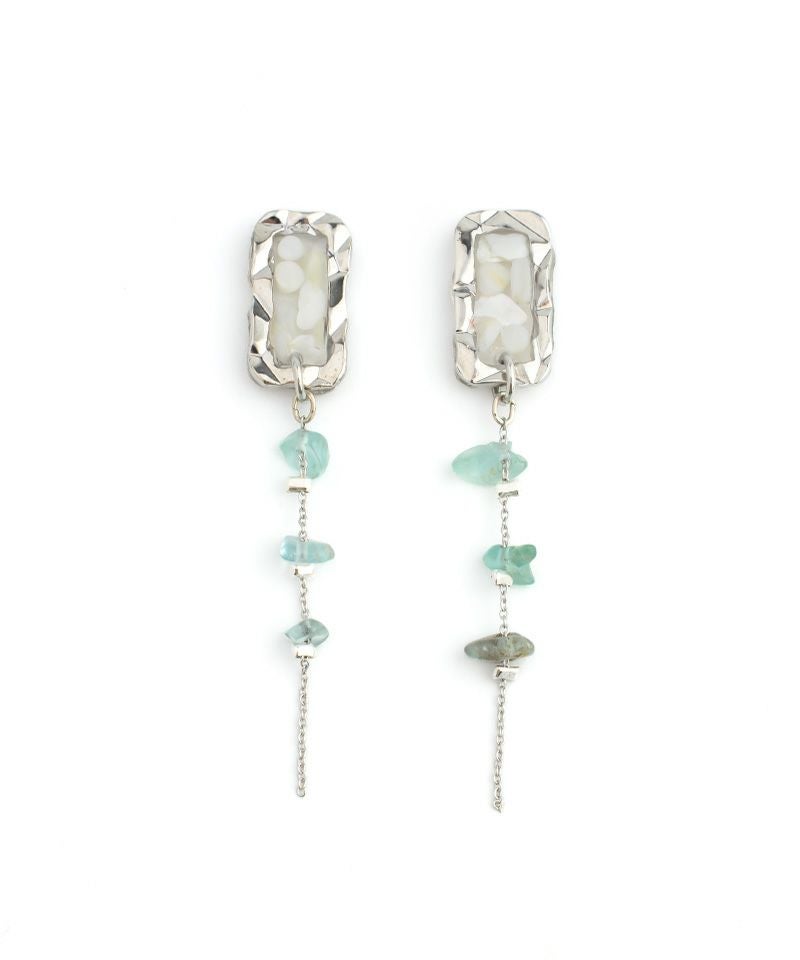 シェルのきらめくレクタングルトップと小ぶりなカラーストーンが揺れて女性らしい耳元にしてくれます◎