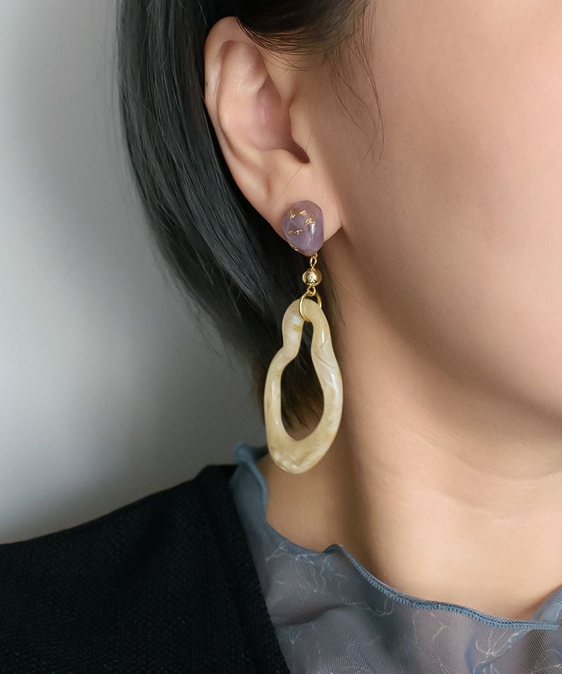 くすみバイカラーとニュアンスフープで存在感のある耳元に♪