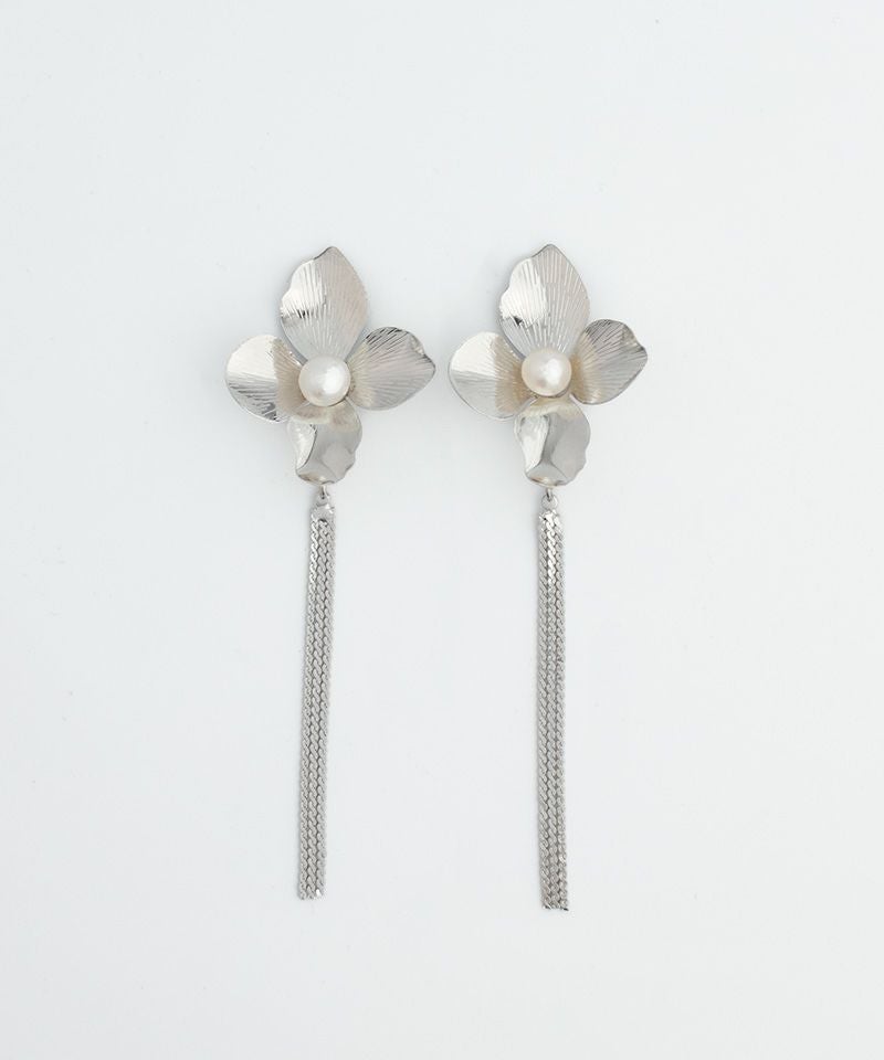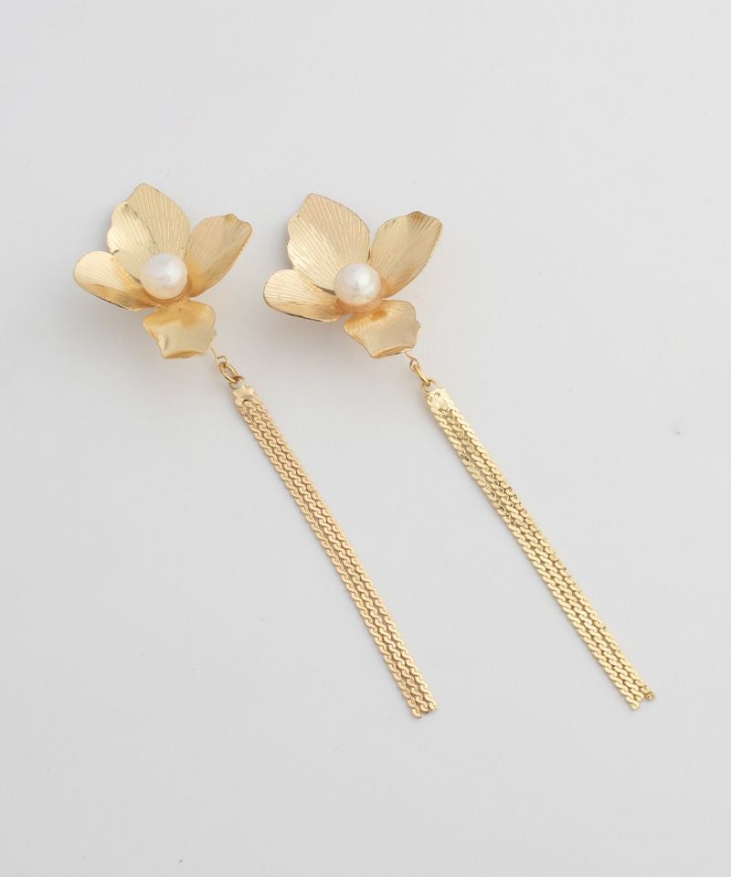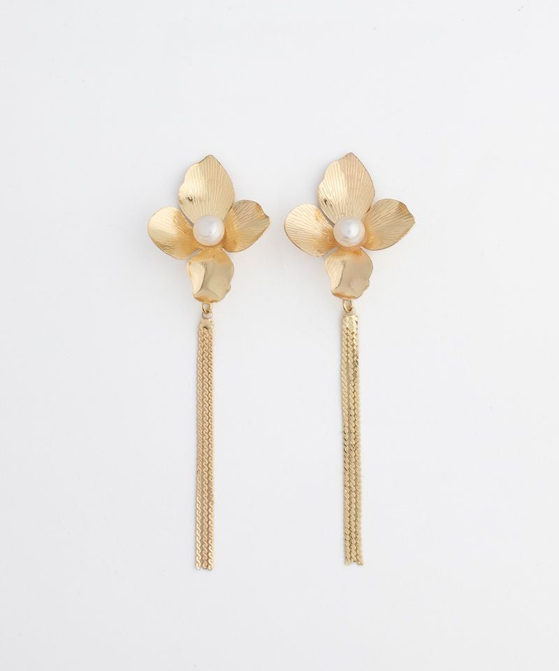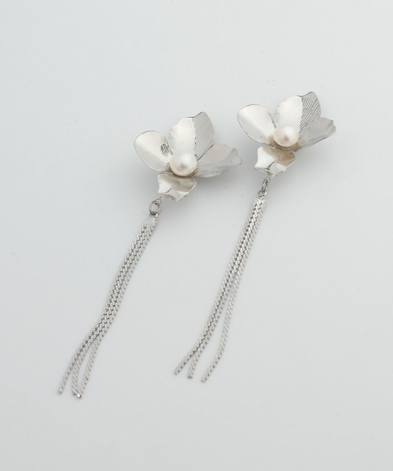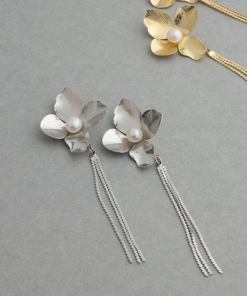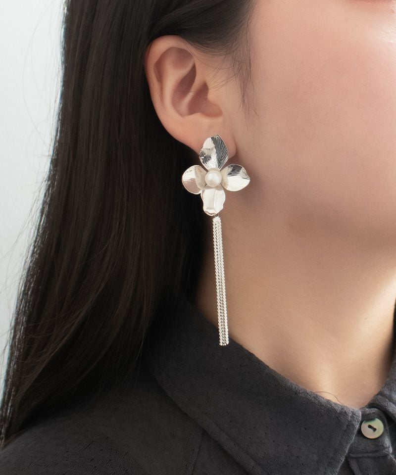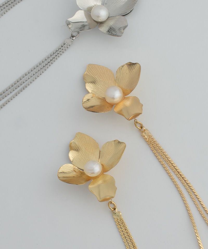 淡水パールを中央にあしらった大きなメタルフラワーがこだわりのアイテム