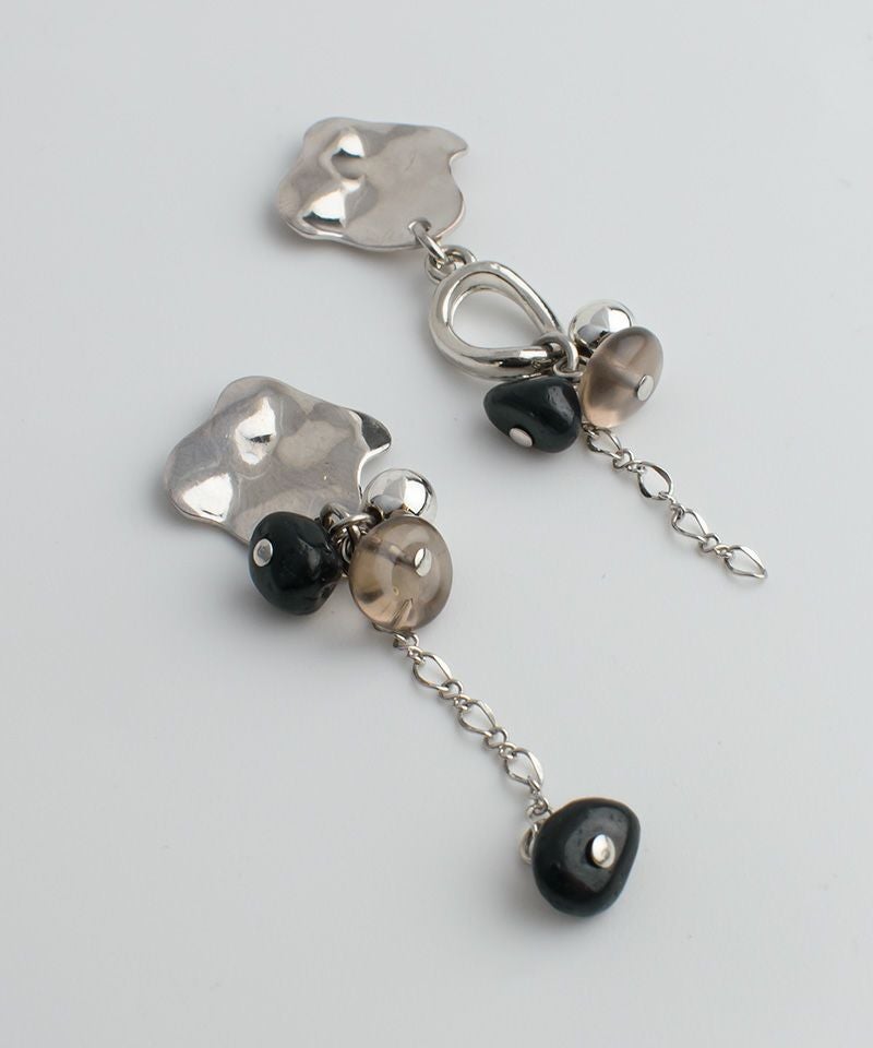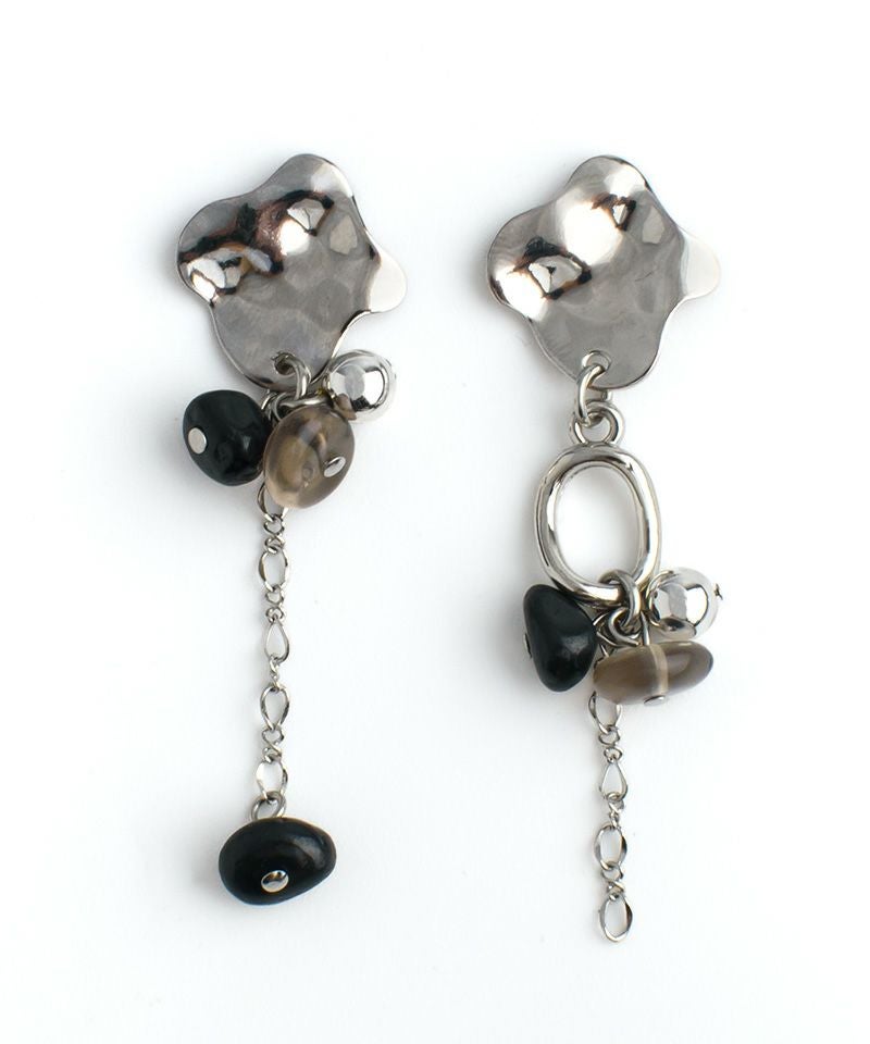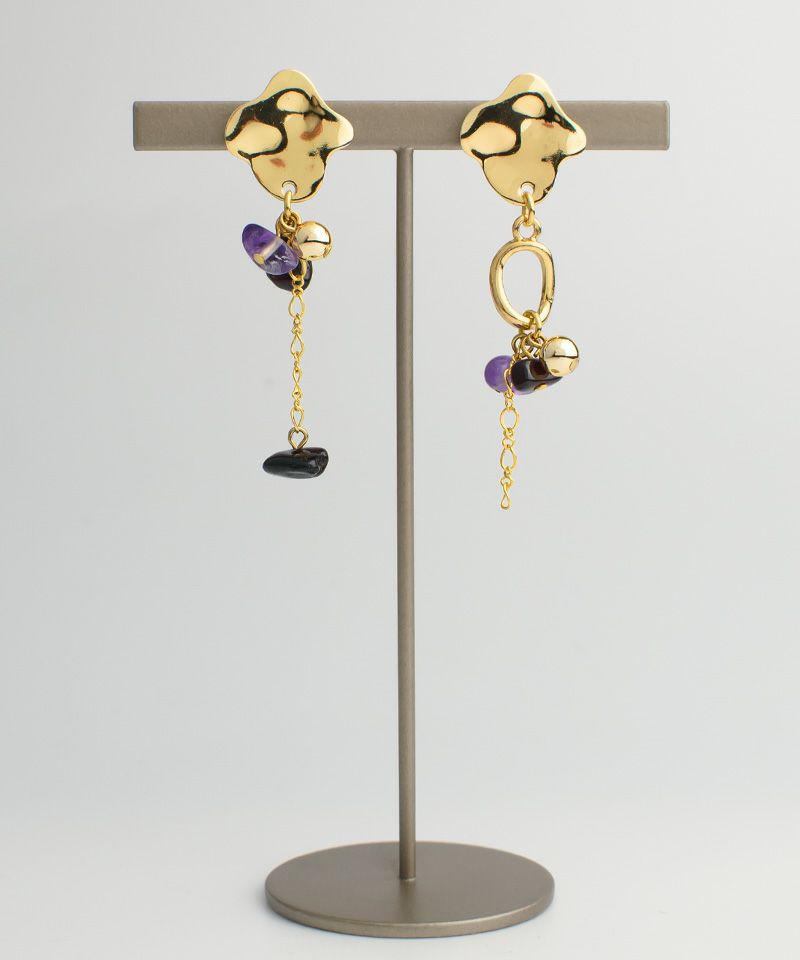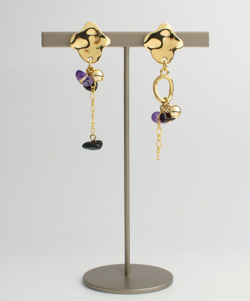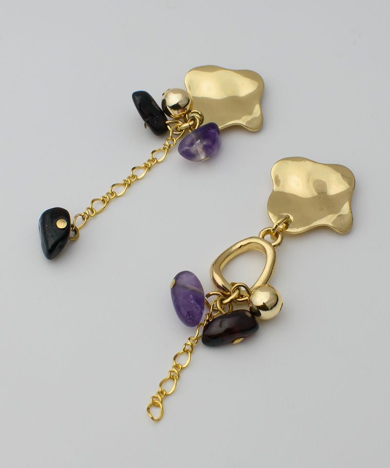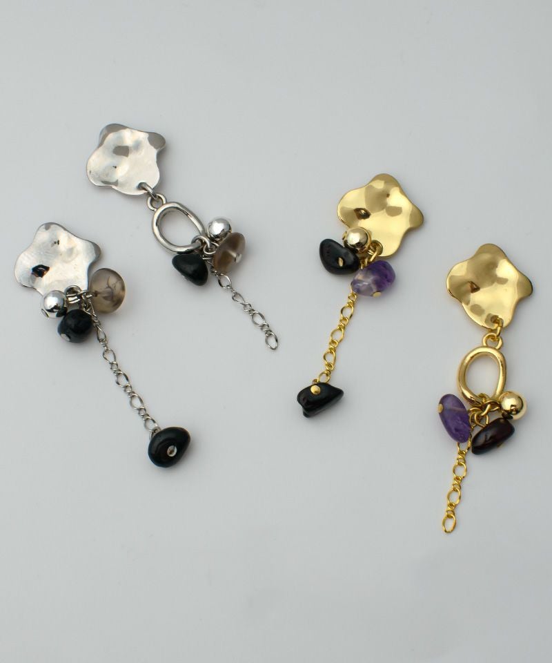 ニュアンスメタルのトップと天然石の組み合わせが印象的なアシンメトリー