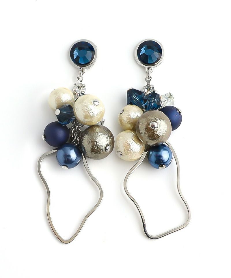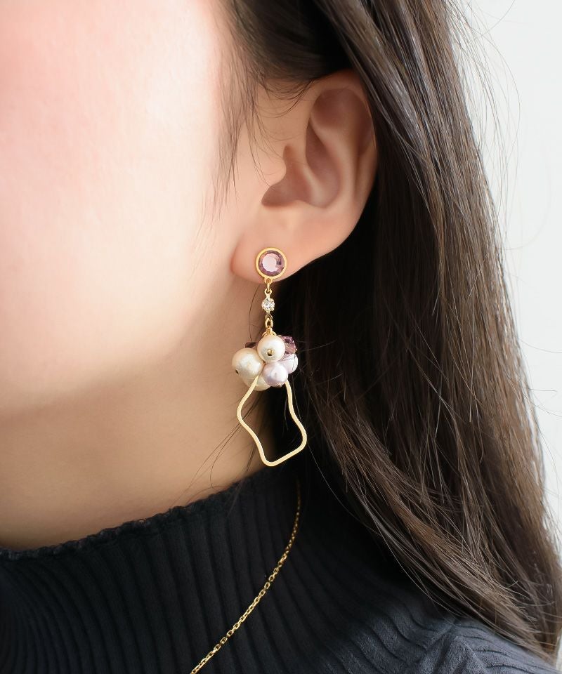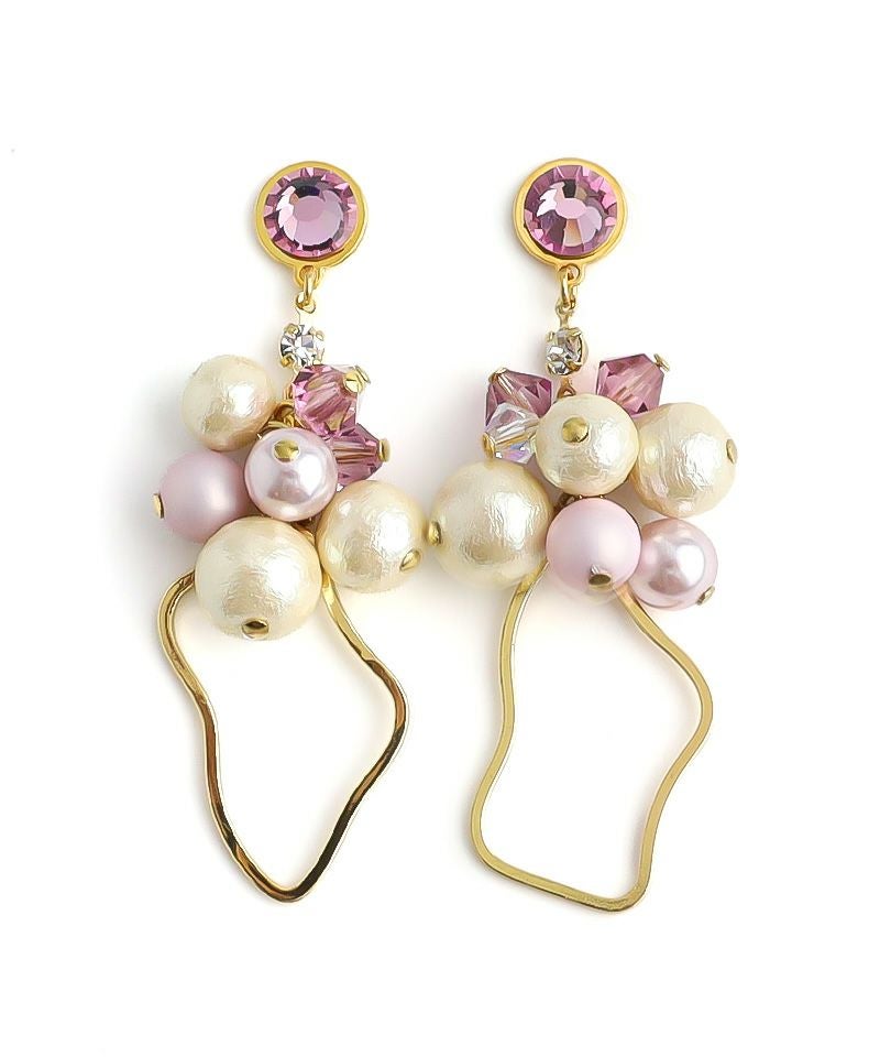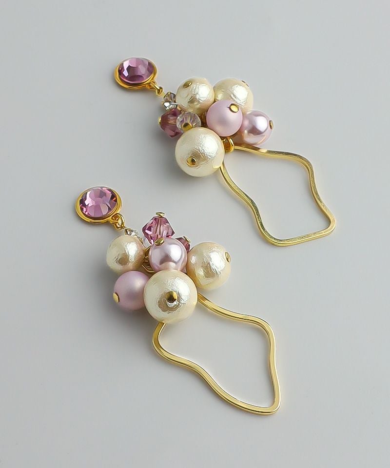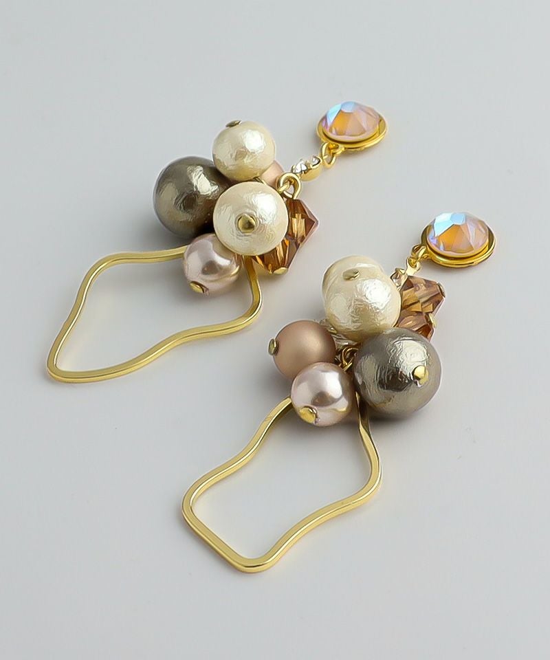 たっぷりコットンパール×ニュアンスメタルフープ