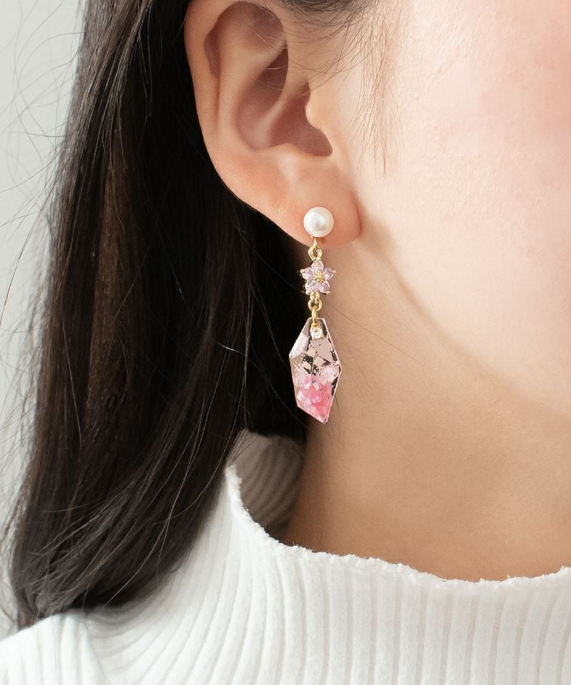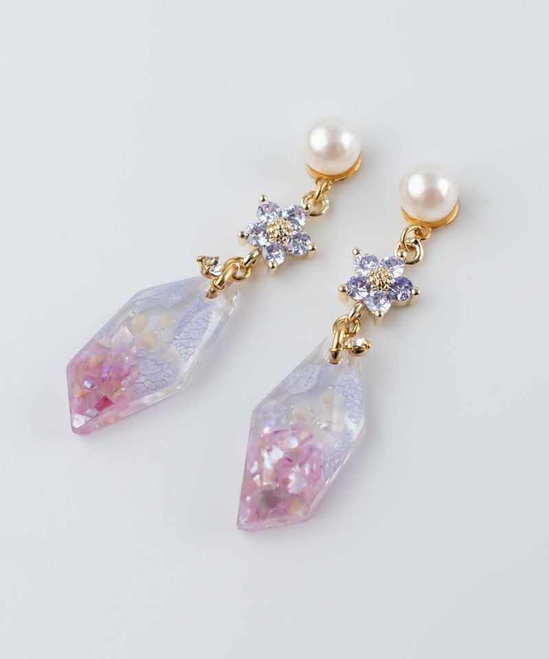 ドライフラワーとシェルがつまったクリアパーツがこだわりのデザイン!