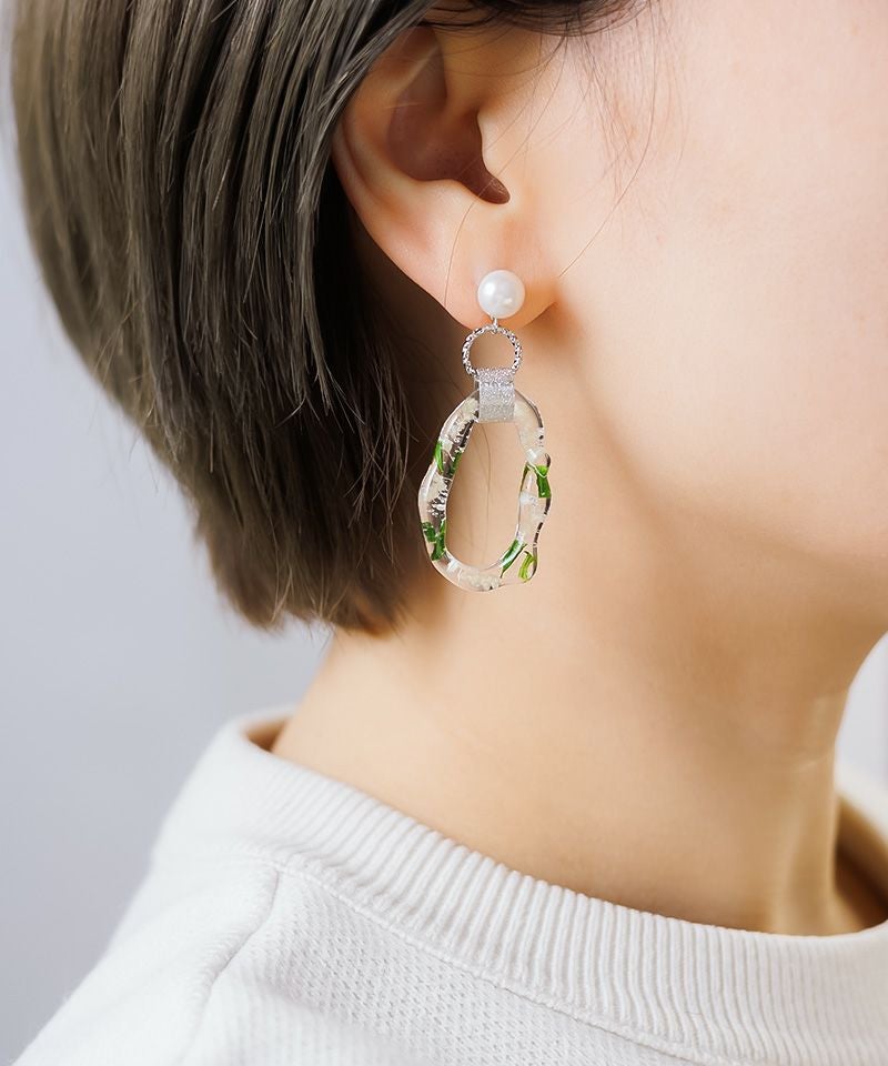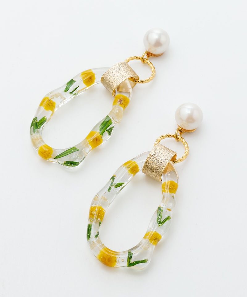 ミモザのつまったクリアのニュアンスフープが個性的なアイテム!