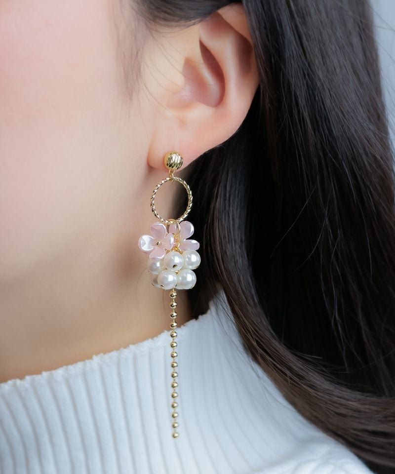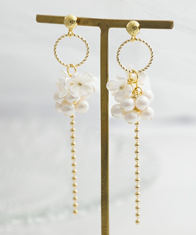 つぶつぶパールのフラワーメタルチェーン
