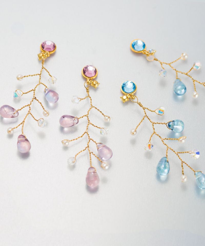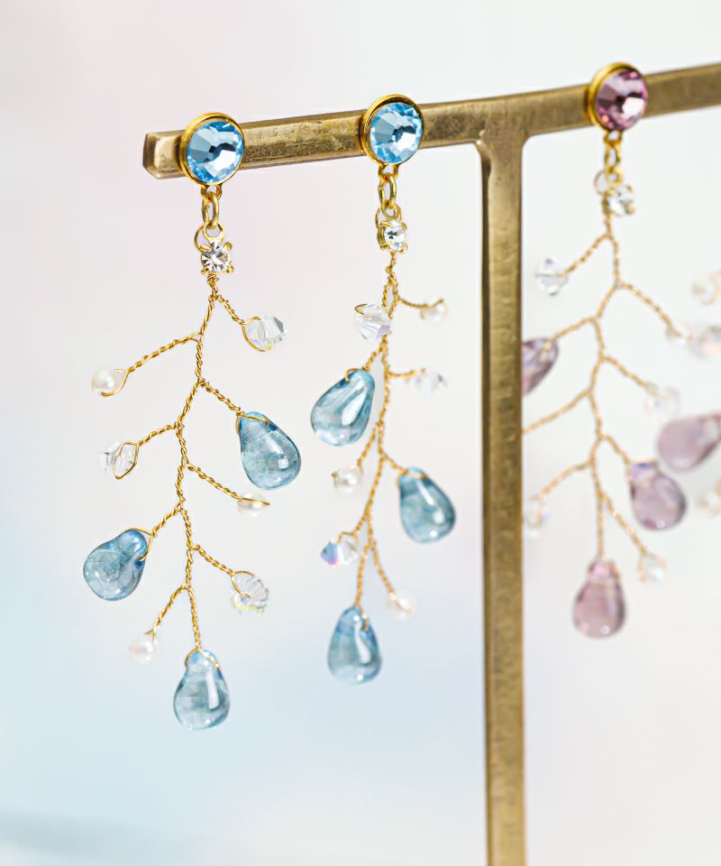 小枝から滴る雨粒のようなビーズが目を引く個性派アイテム☆