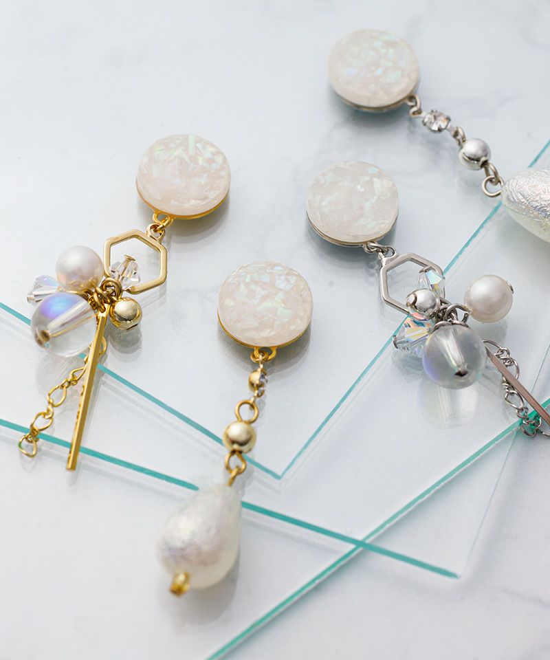 きらきら輝くパールが左右で違った雰囲気を表現します。