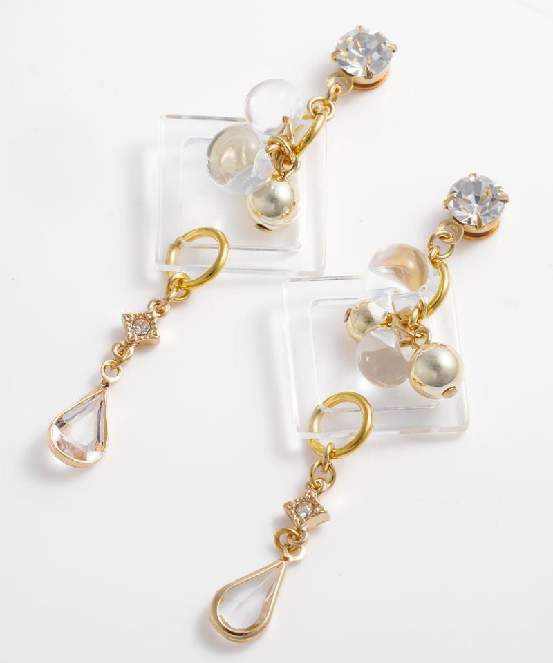 スクエアフープとクリアストーンがとても軽やかで爽やかな印象を与えます。