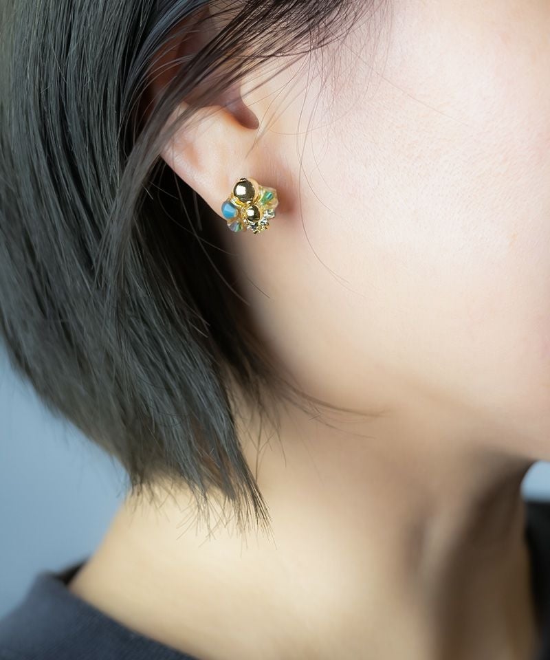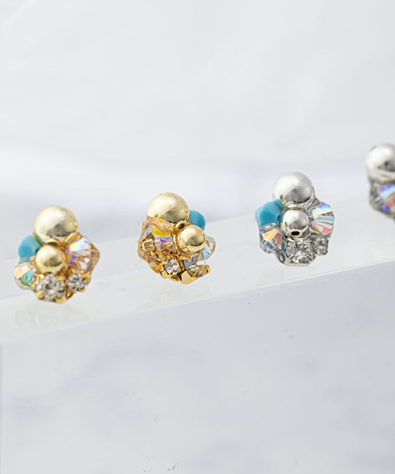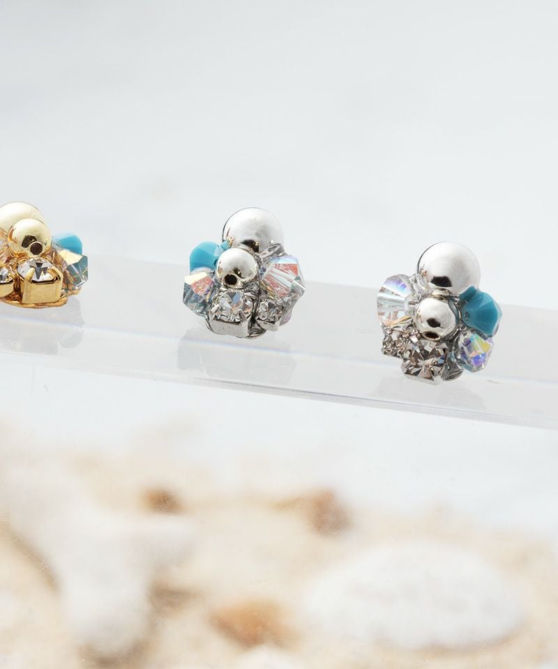 ターコイズを使用した大きなビジューがカッコ可愛いアイテム。
