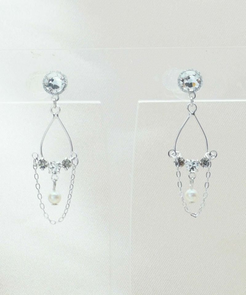 シルバーを購入。下のチェーンと、パールがフルフルと揺れて、とても可愛いです。パールの上の大きさと色が微妙に違う3つのスワロがキラキラと綺麗です。