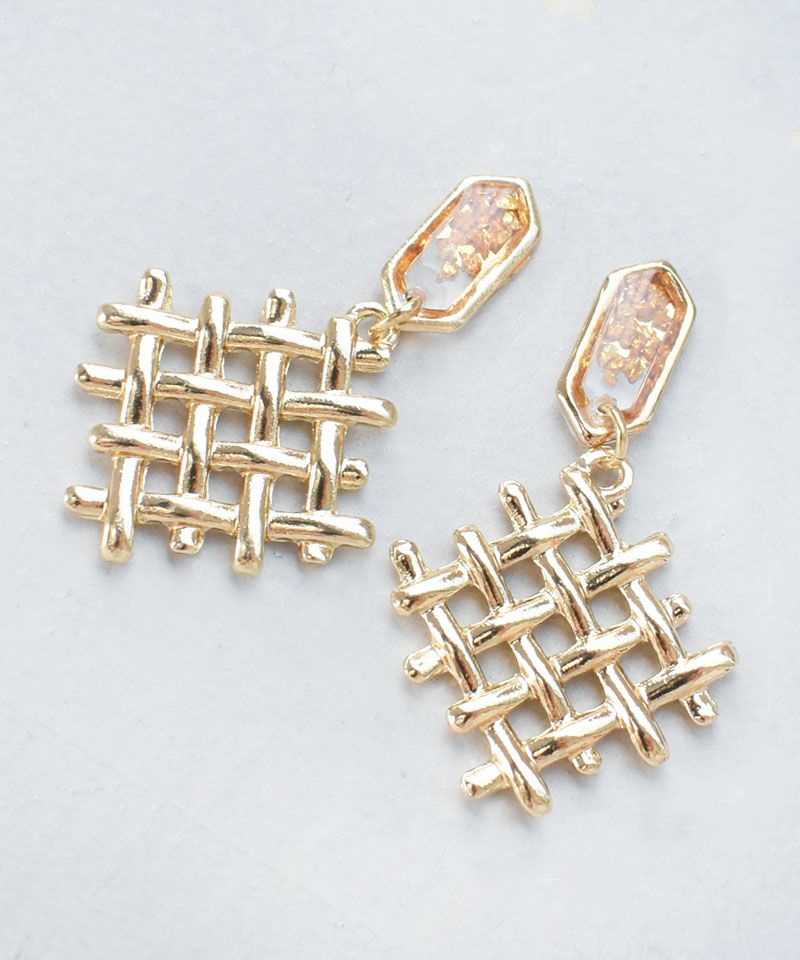 メッシュのデザインチャームは可愛らしさとスタイリッシュな印象を兼ね備えた万能ピアス。シャツでもブラウスでも、寄せてきてくれるオールマイティなアイテム。
