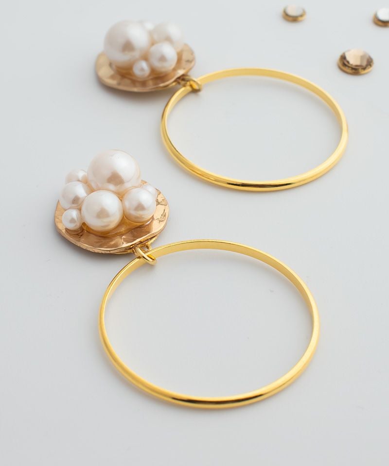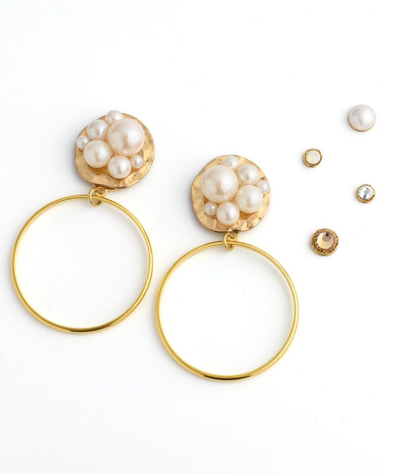 メタルのフープと組み合わさってカジュアルダウンしてくれるのがポイントです◎