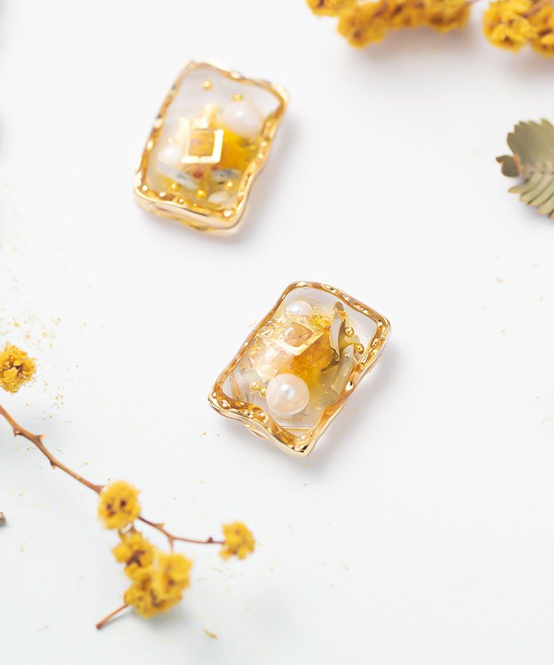 レジンの中にミモザやパールを閉じ込めたこだわりデザイン☆