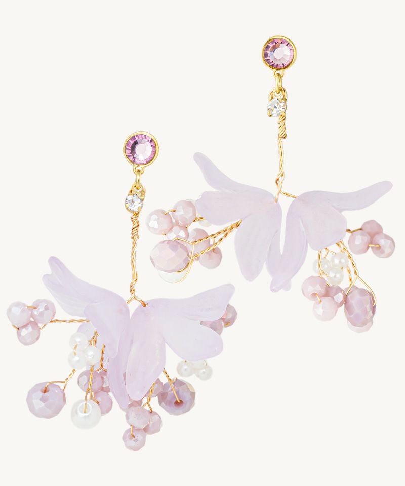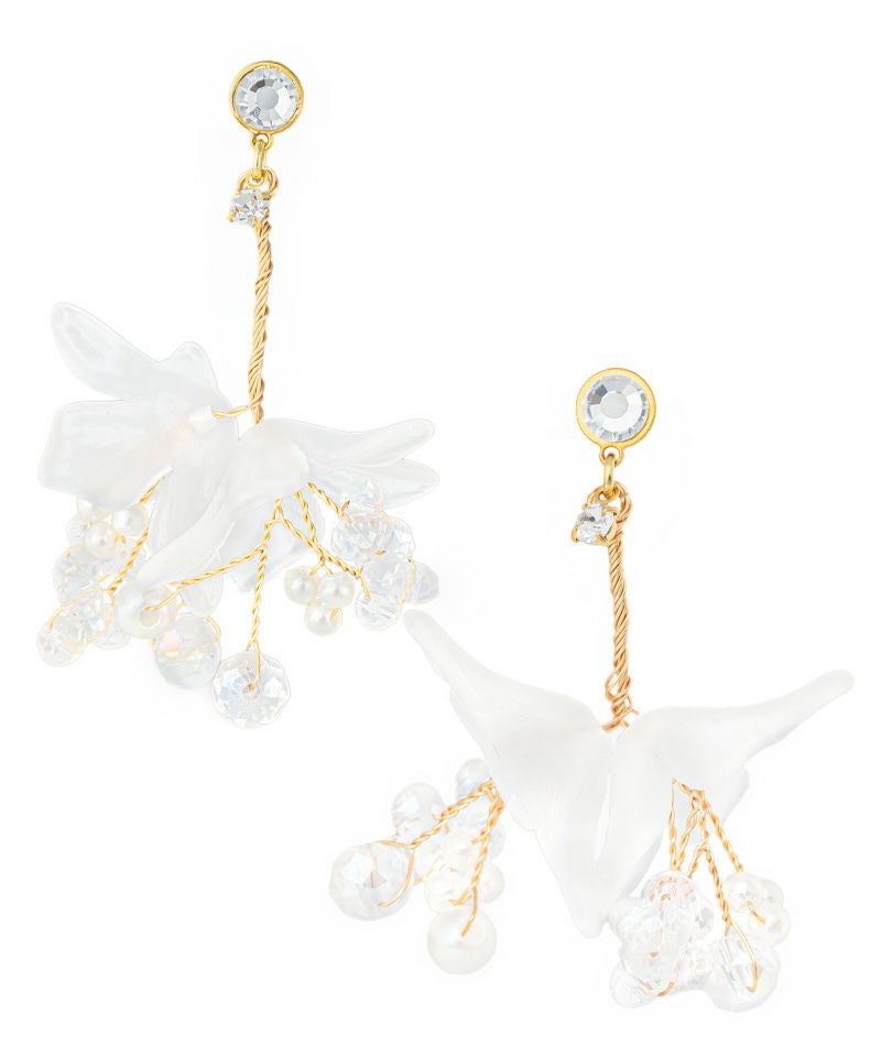 淡く柔らかな色合いと、大ぶりながらも優しく揺れる様子は、シンプルなコーデも華やかに演出してくれます♪