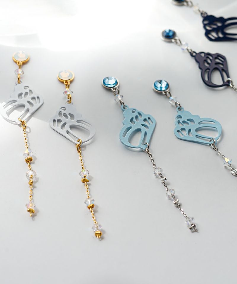 可愛い巻貝モチーフとロングチェーンが印象的なデザイン!