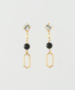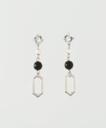 黒い花モチーフの下でS字ワイヤーが軽やかに揺れるエレガントなピアス。