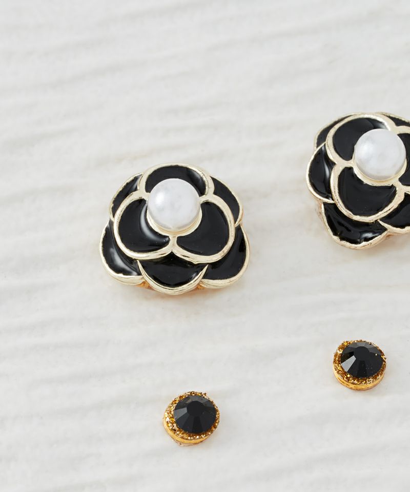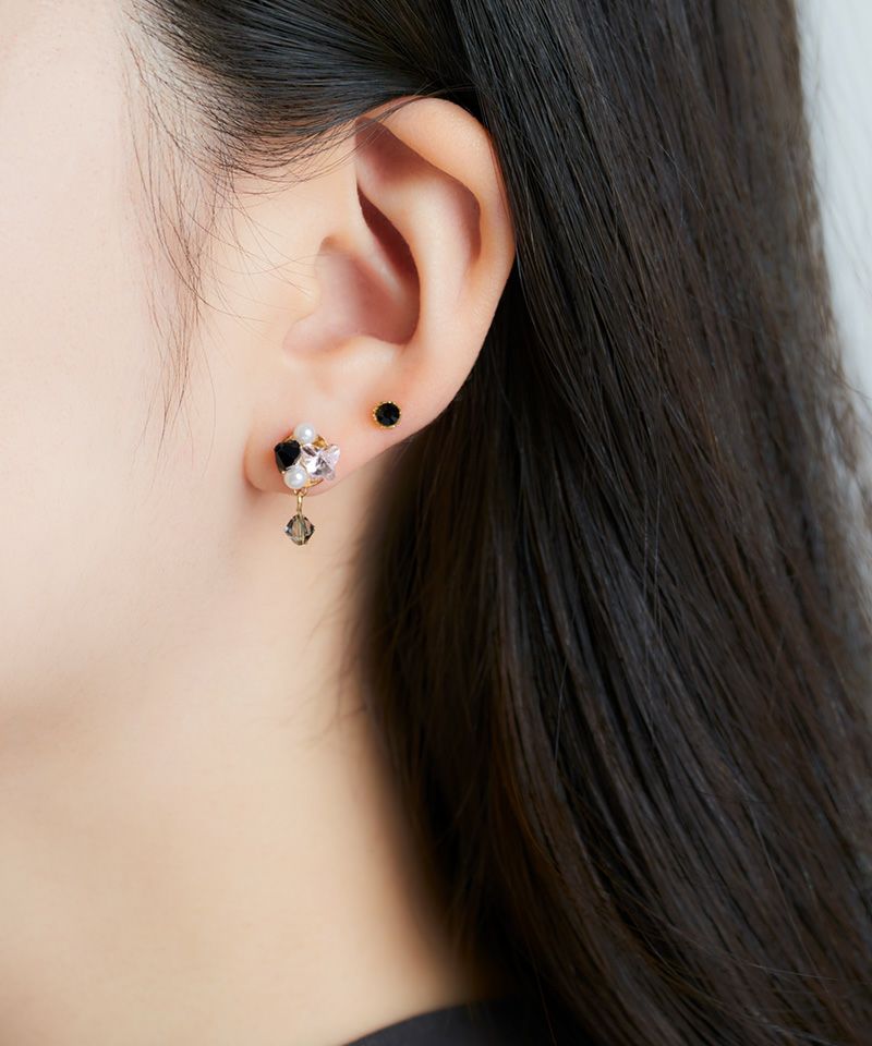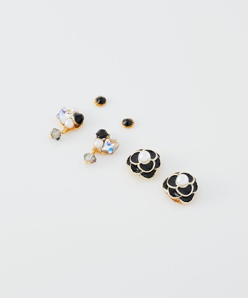 黒を基調としたクラシックフラワーピアスとビジューチャームピアスの3点セット☆