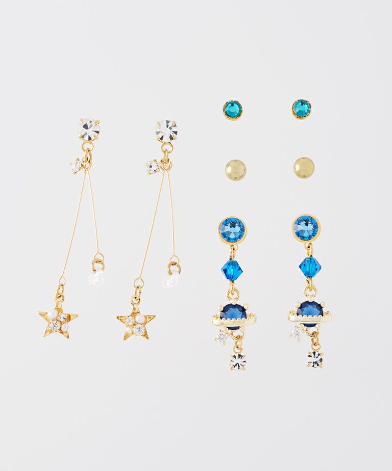 夜空を旅するような、星と惑星モチーフのカラーピアスセット☆
