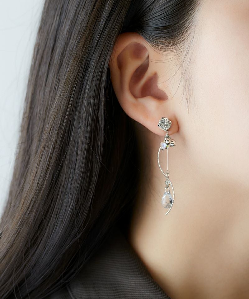 光を受けて氷のようにキラキラと輝き耳元でひんやりとした涼しさと華やかさを演出します。