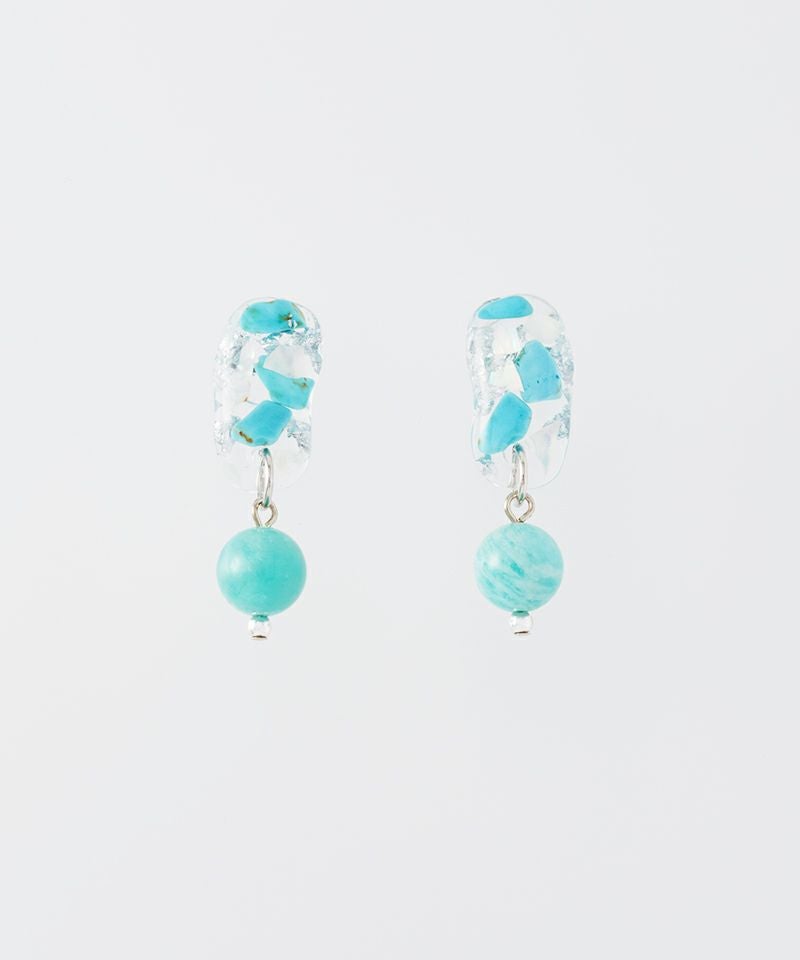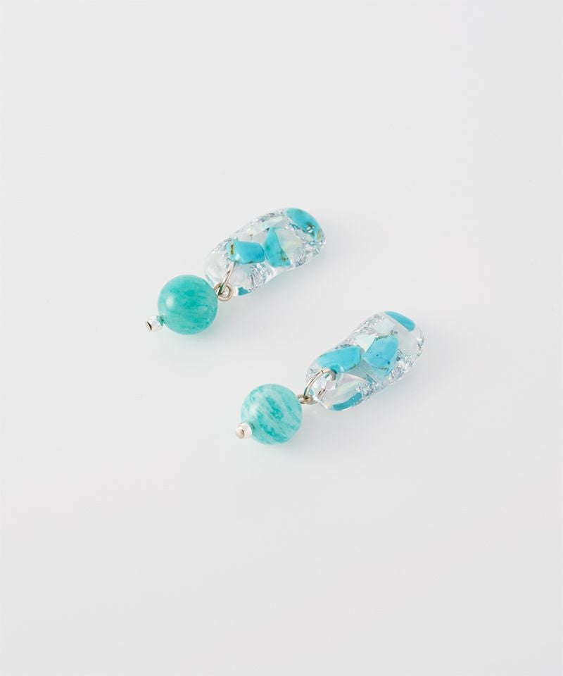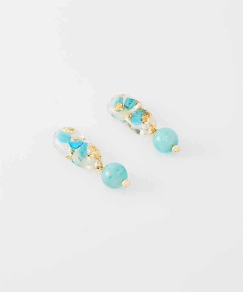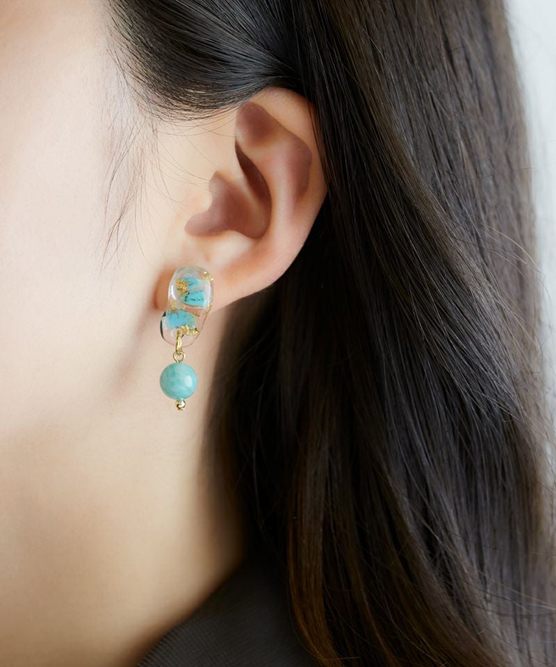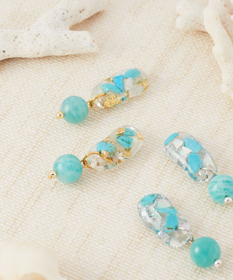 ターコイズの持つナチュラルな風合いとレジンのクリアな透明感が絶妙にマッチし、カジュアルにもリゾートスタイルにもぴったりです。