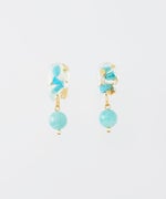レジンの中にシーグラスのようなターコイズやシェルを閉じ込めた軽やかで夏らしいアイテム。