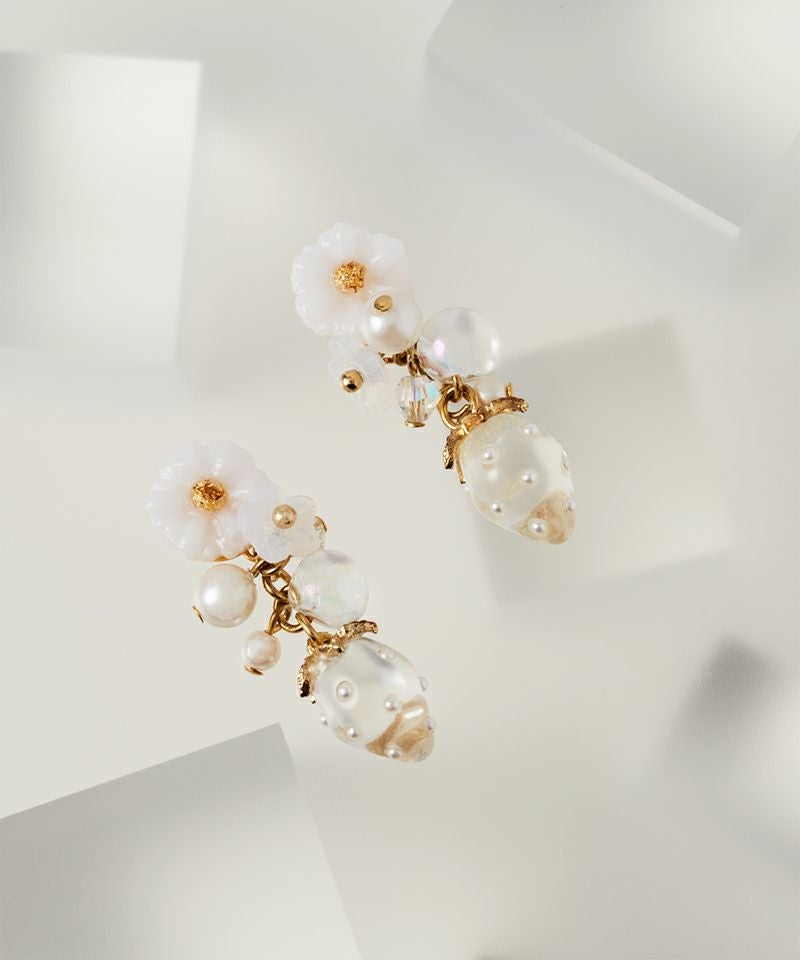 透明感のあるいちごモチーフと白いお花が軽やかに揺れるアイテム☆