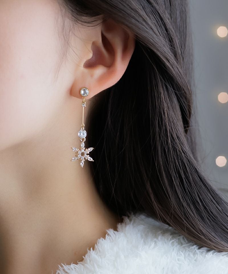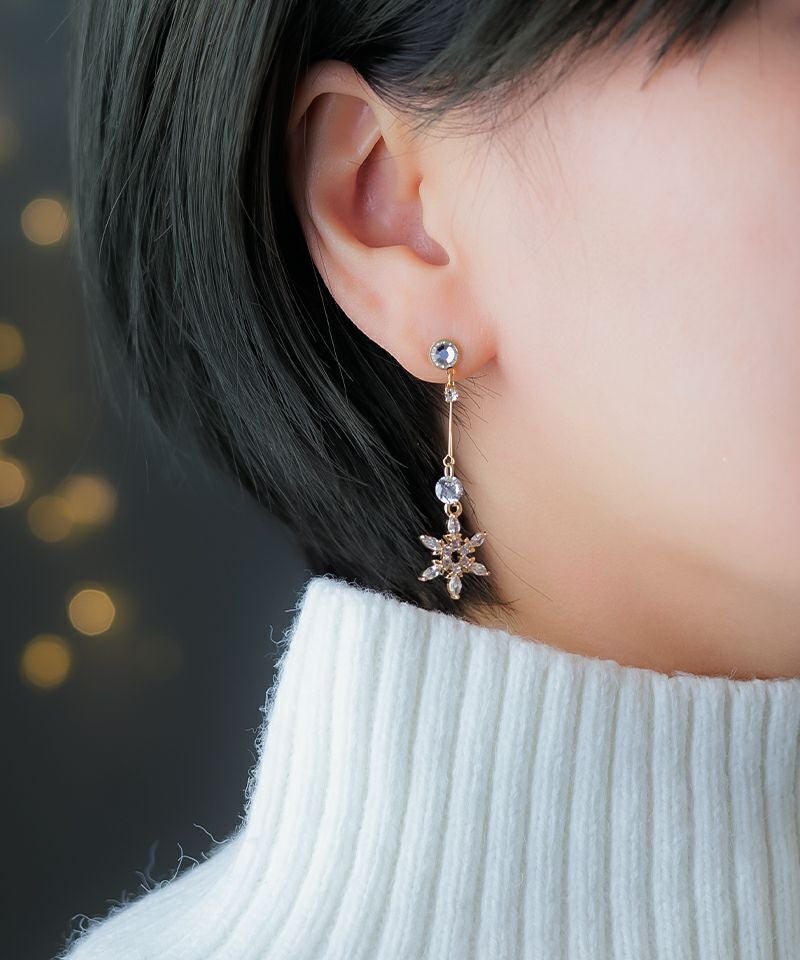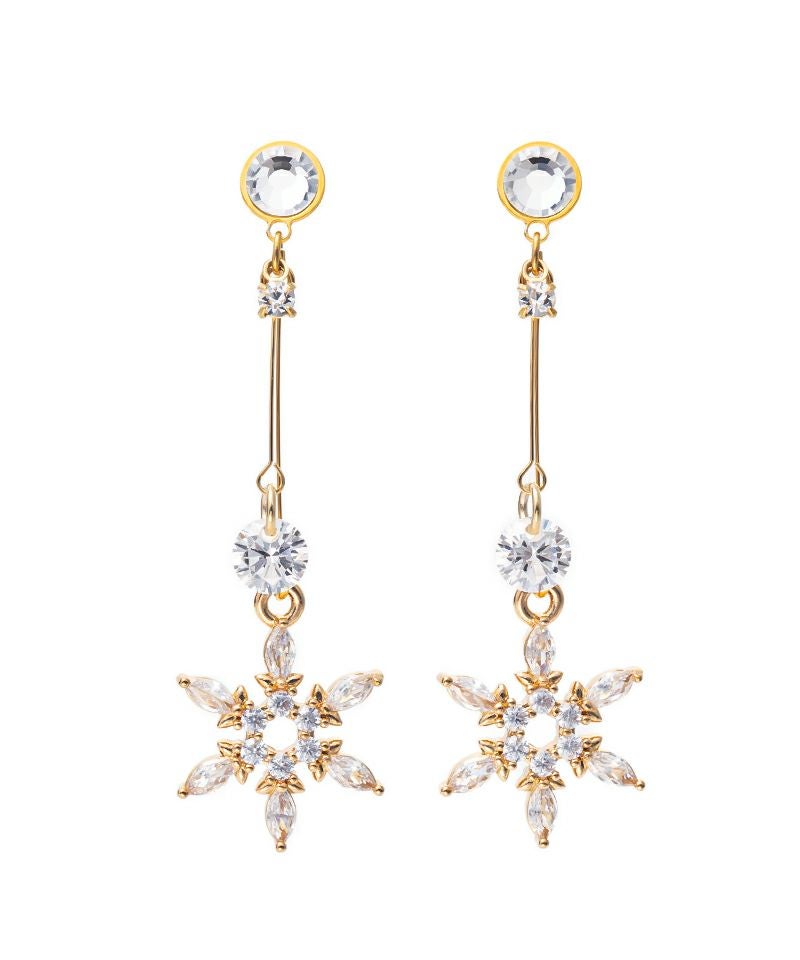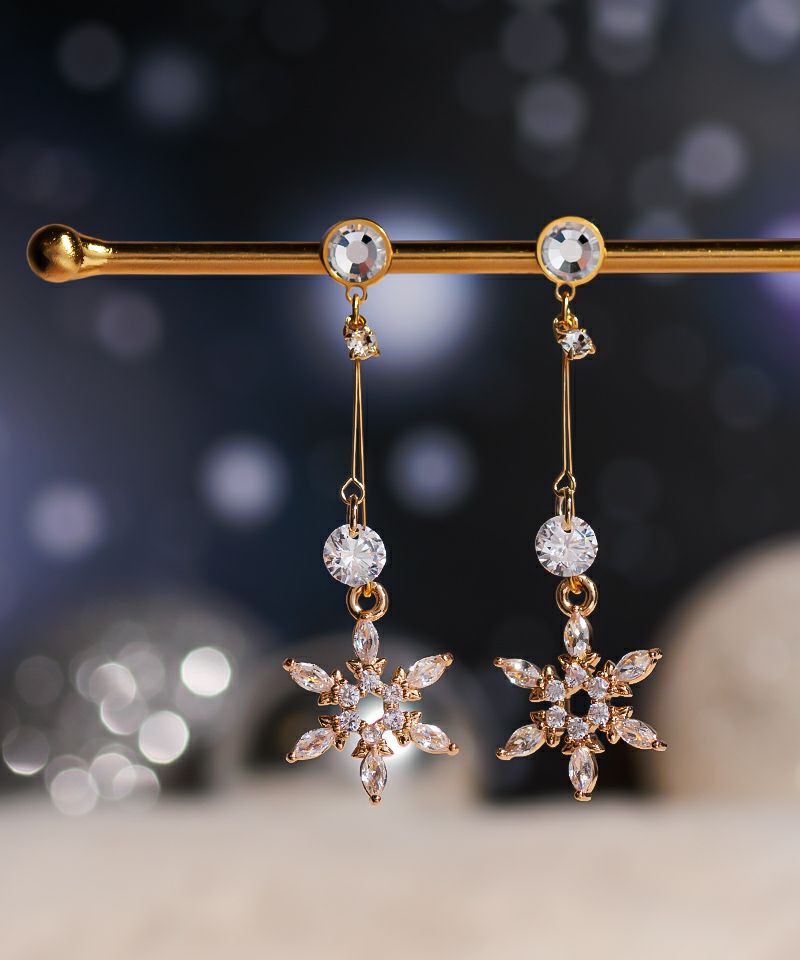 ダブルワイヤーで輝く雪の結晶とクリスタルストーン。