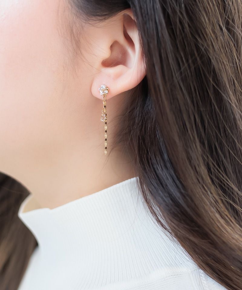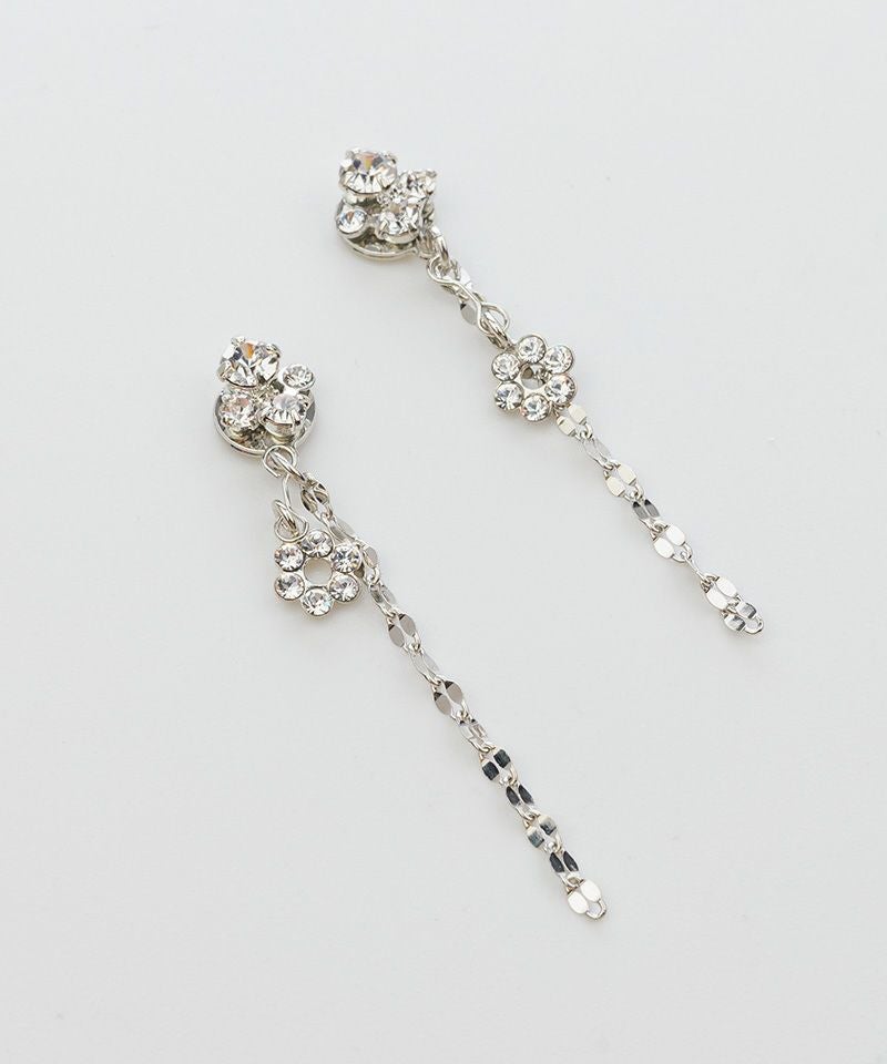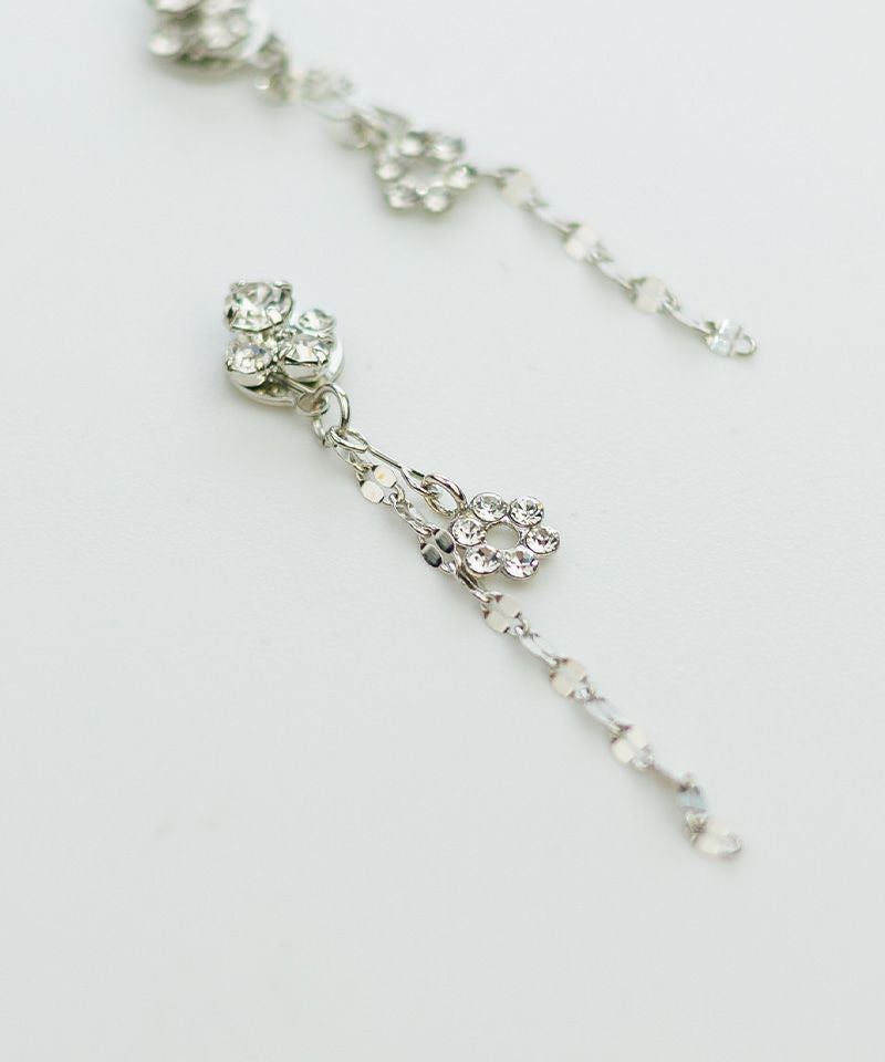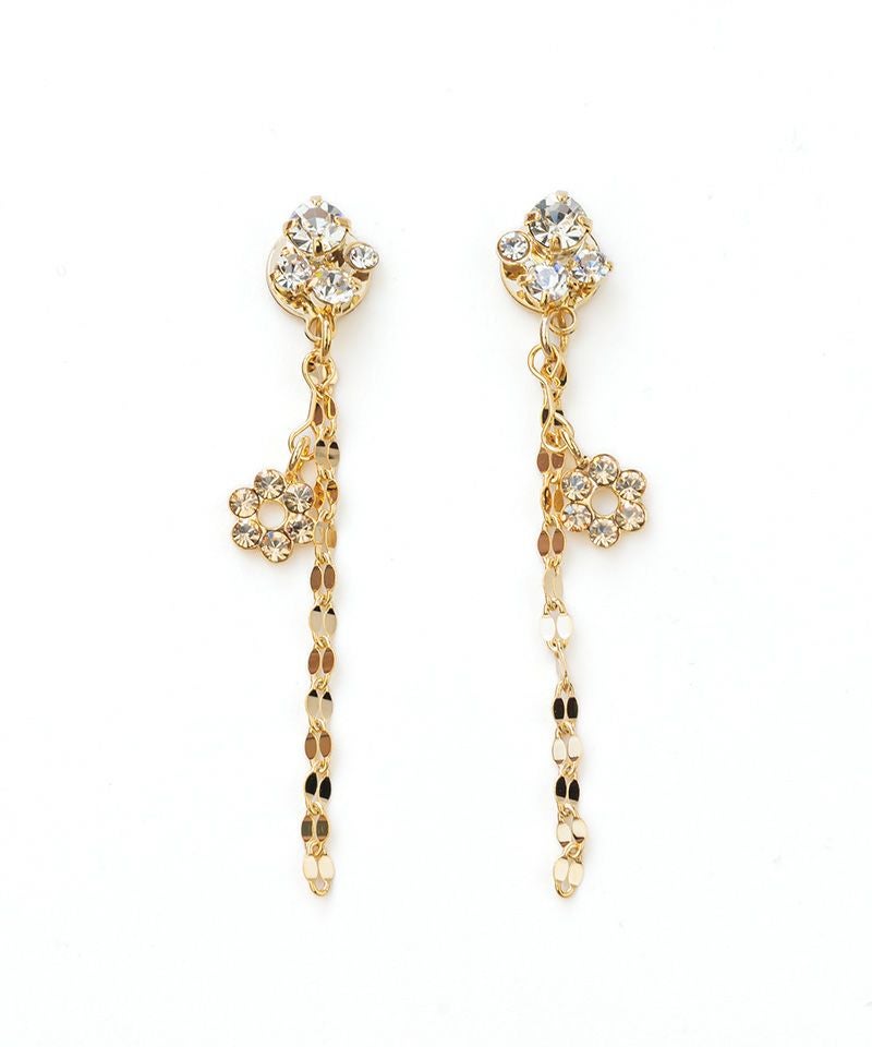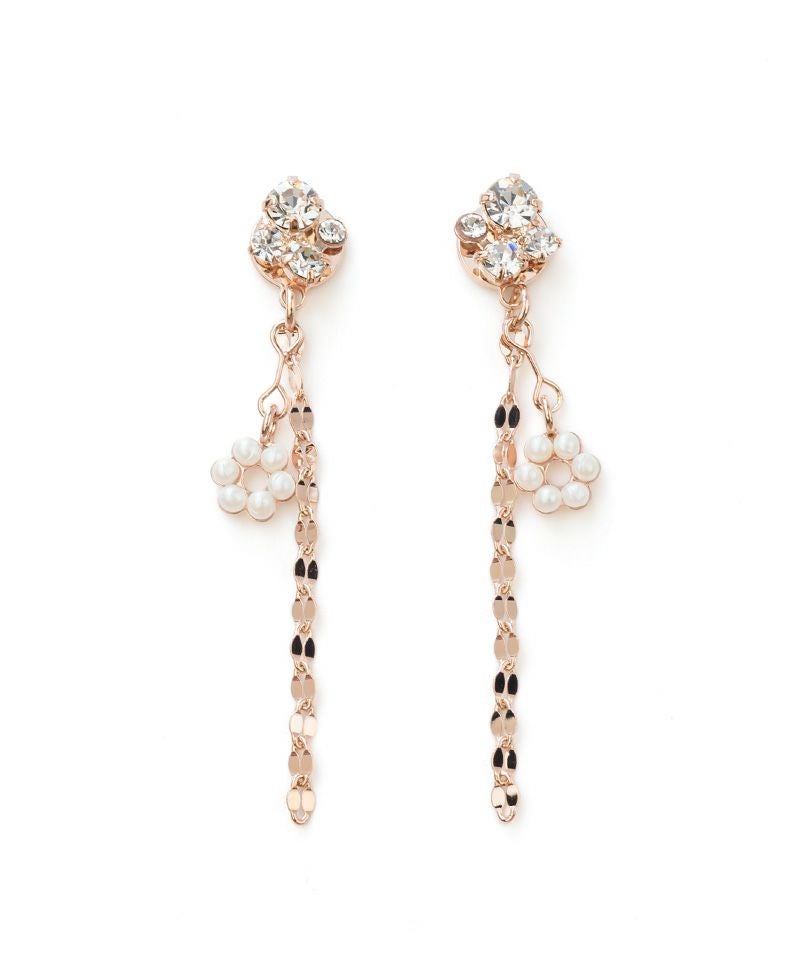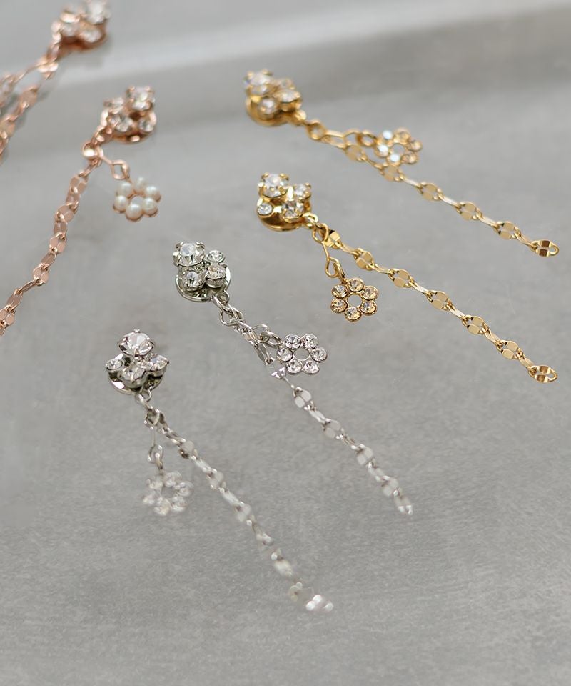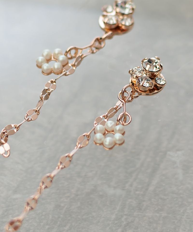 クリスタルの下にのびるペタル(花びら)チェーンが、振り向くたびにキュートに揺れ、軽やかな印象を与えます♪